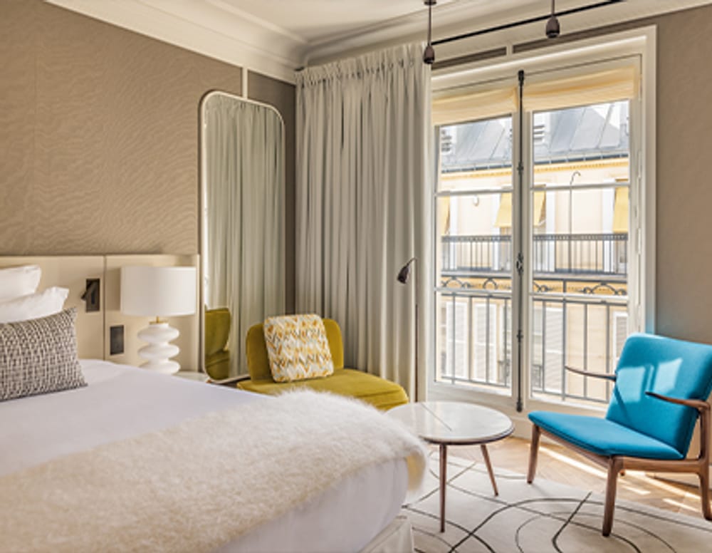 Comfort is omnipresent, palpable. The range of colors is soft, easy to appropriate. The view of the facades and rooftops of the neighborhood gives one the confused feeling of owning and belonging to Paris. Here you can taste the salt of the city. Among the 47 rooms, 14 have been redecorated by Didier Benderli in 2022 (2 Classics, 7 Deluxes, 4 Suites and the James Joyce Suite).