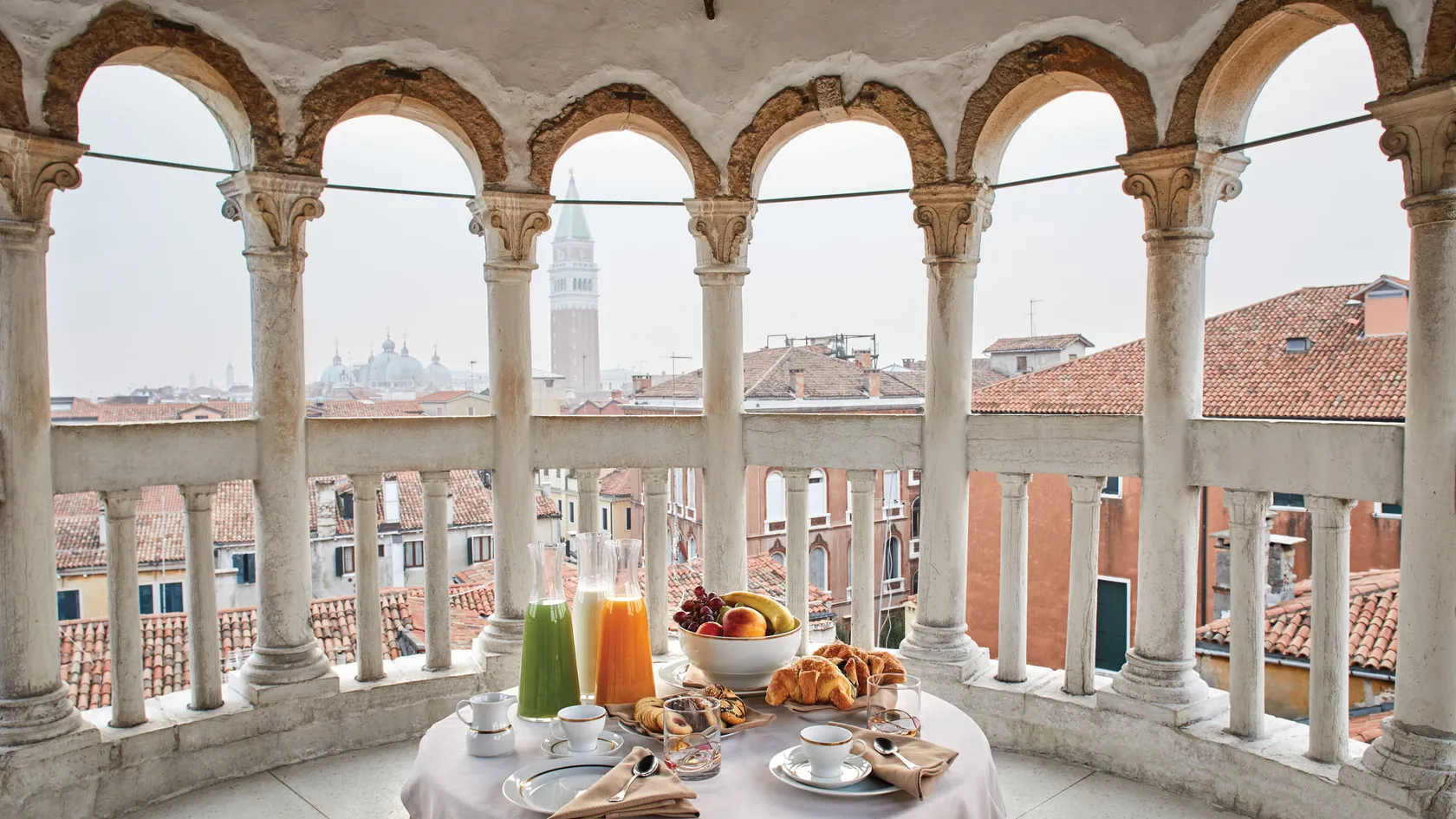 - 96 exquisitely decorated rooms and suites, many with balconies or terraces overlooking the lagoon, the gardens and St Mark’s.Surrounded by green gardens overlooking a shimmering lagoon