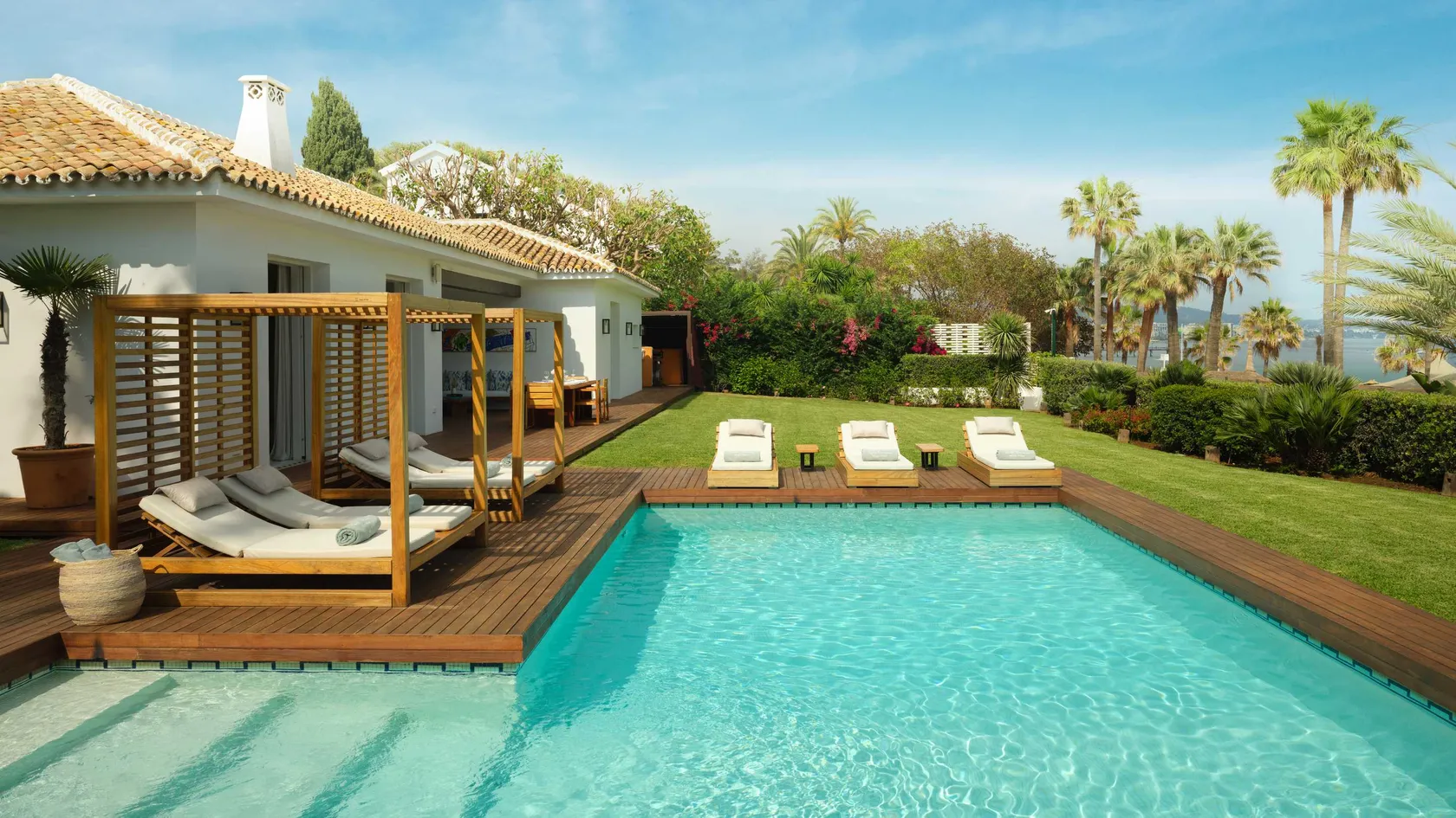 The Puente Romano Beach Resort in Marbella, Spain offers luxurious 5-star accommodations with a variety of room types to choose from. Guests can enjoy spacious and elegantly appointed suites, junior suites, and deluxe rooms, all featuring modern amenities and breathtaking views of the Mediterranean Sea.