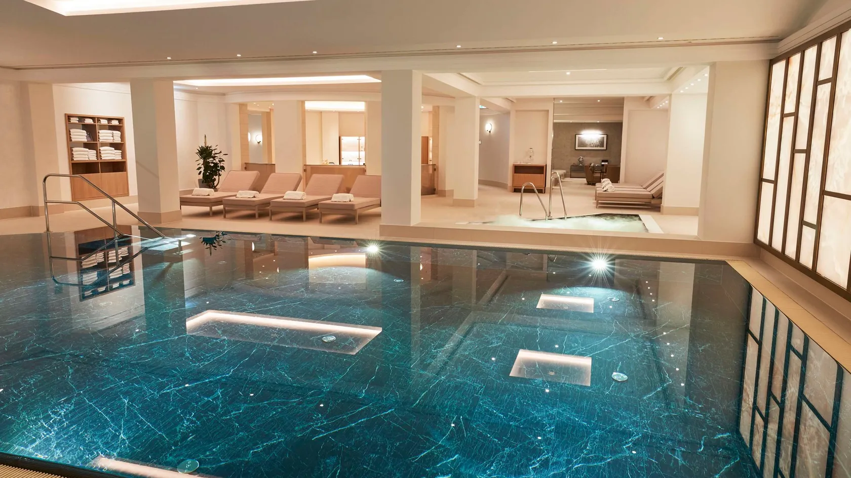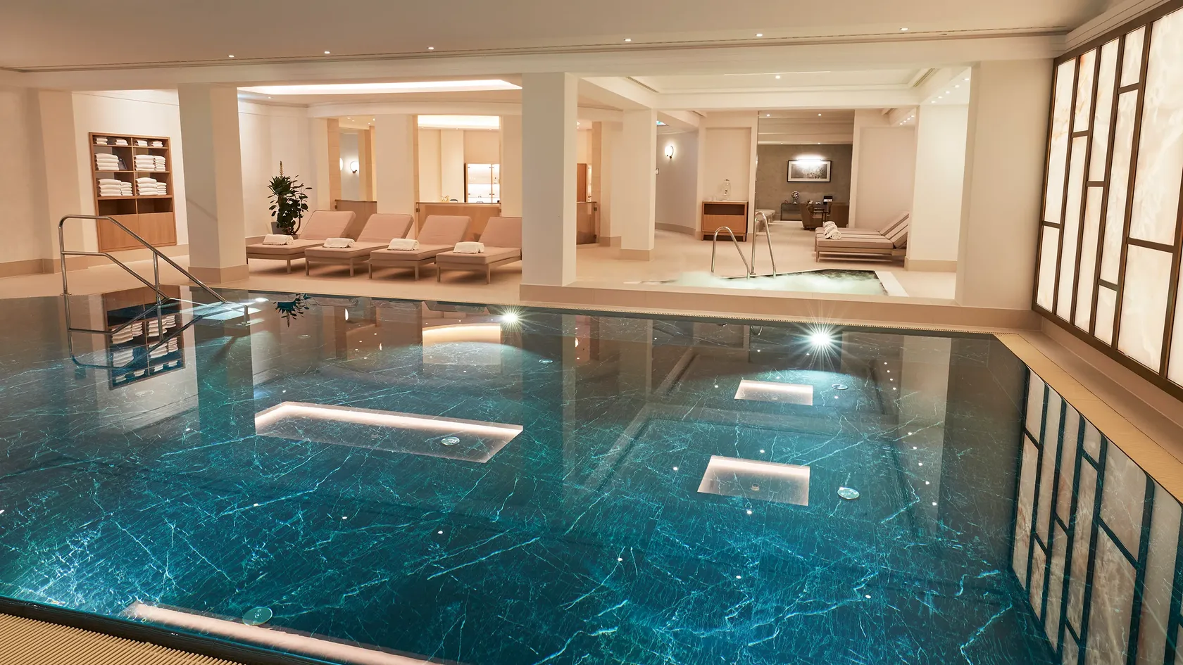 - Three private spa suites of 45 sq m, equipped with bath, Jacuzzi®, shower with integrated steam bath or sauna