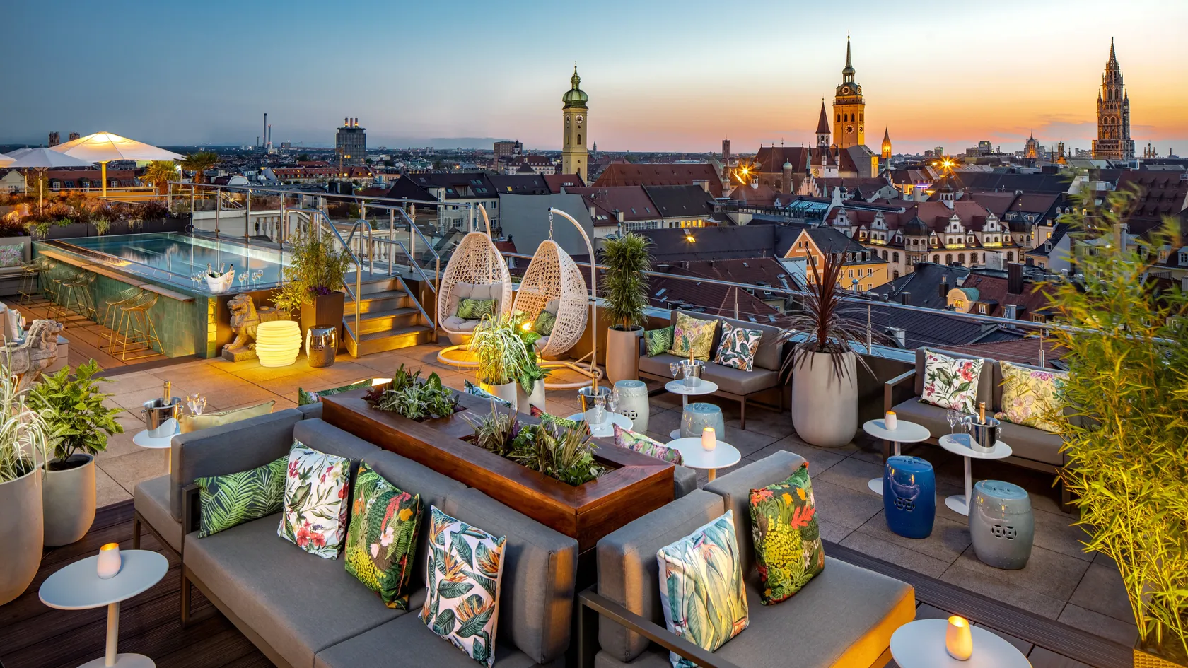 The Mandarin Oriental, Munich offers a range of luxurious room types, including Deluxe Rooms, Junior Suites, Executive Suites, and Presidential Suites. All rooms feature contemporary décor, modern amenities, and spectacular views of the city. Guests can enjoy 24-hour room service, complimentary Wi-Fi, and access to the hotel's spa and fitness center.