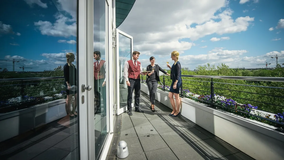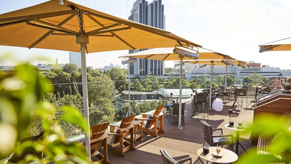 - "Top Seven" roof terrace with a breath-taking view of the Hamburg skyline