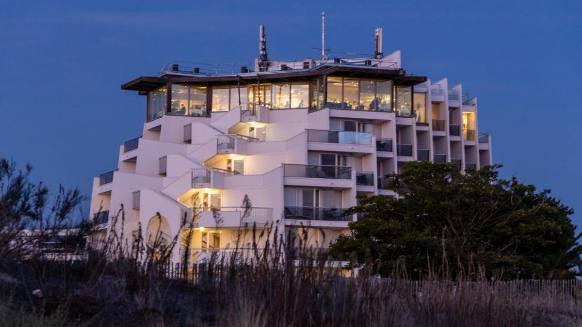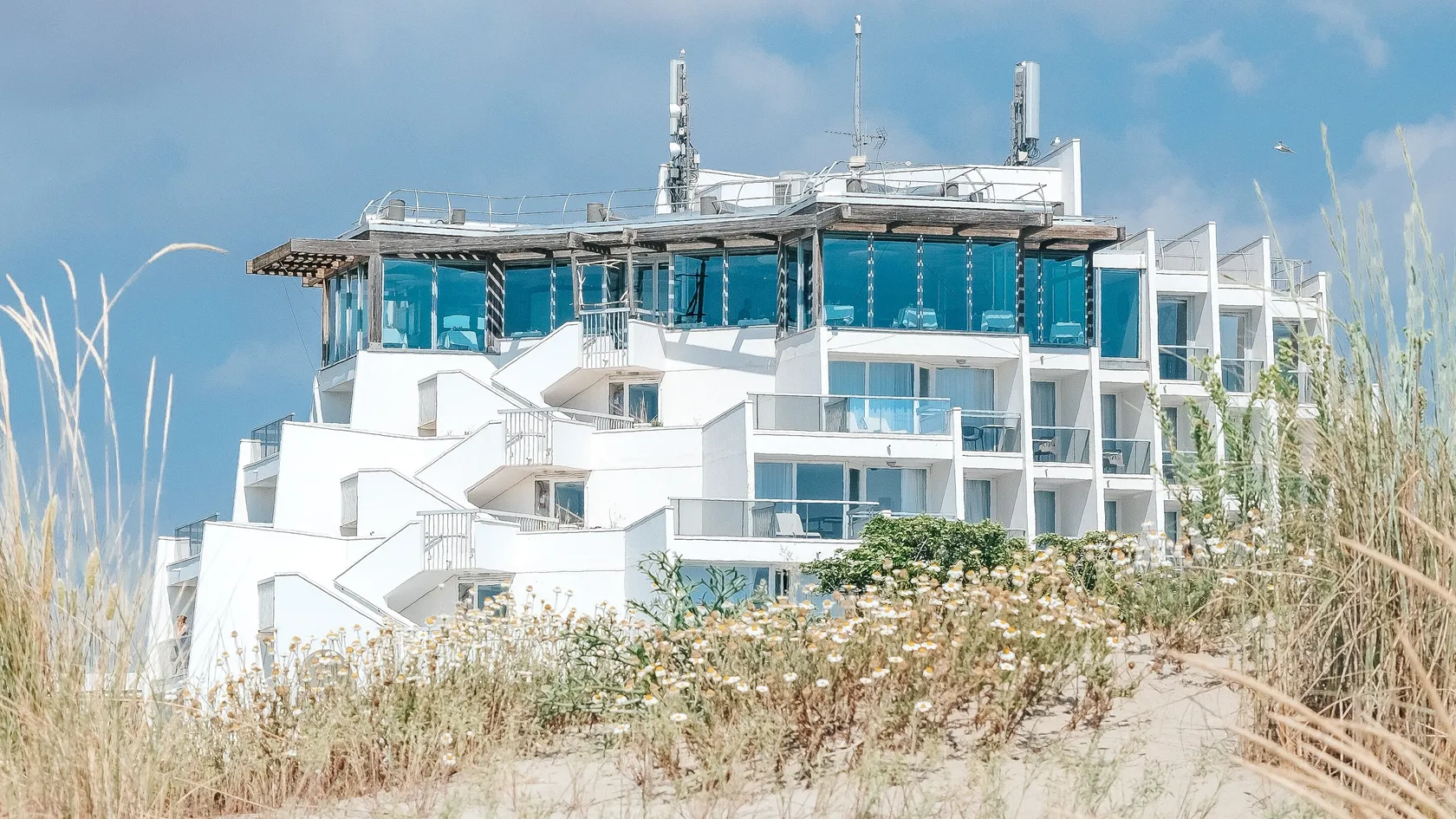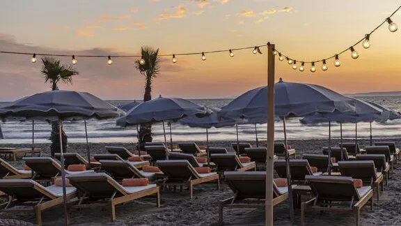- “Le M'” restaurant on the beach,