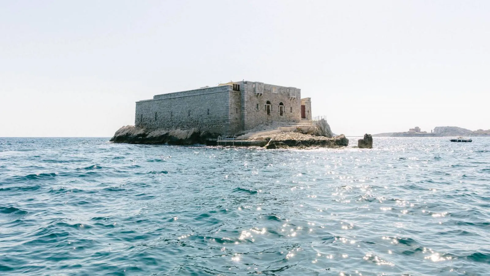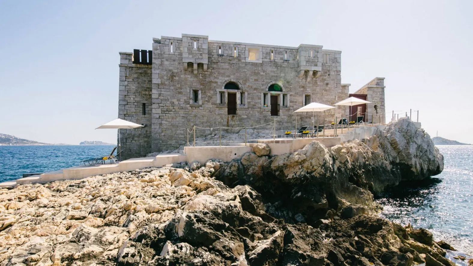 - A beach on an island in the bay of Marseille.