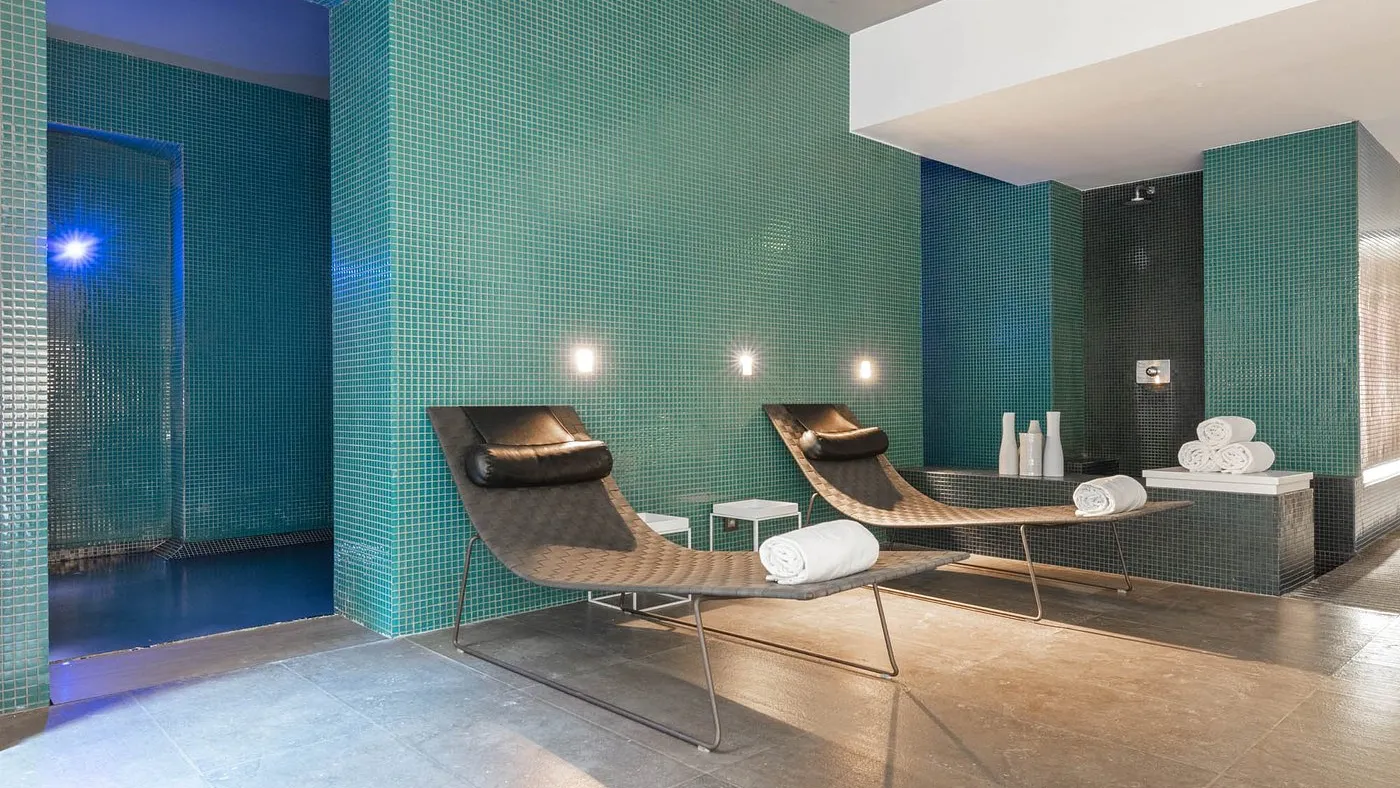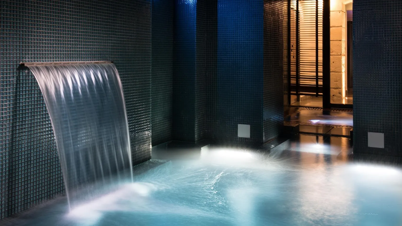 - A soothing and unique spa with its swimming pool dug between the walls.