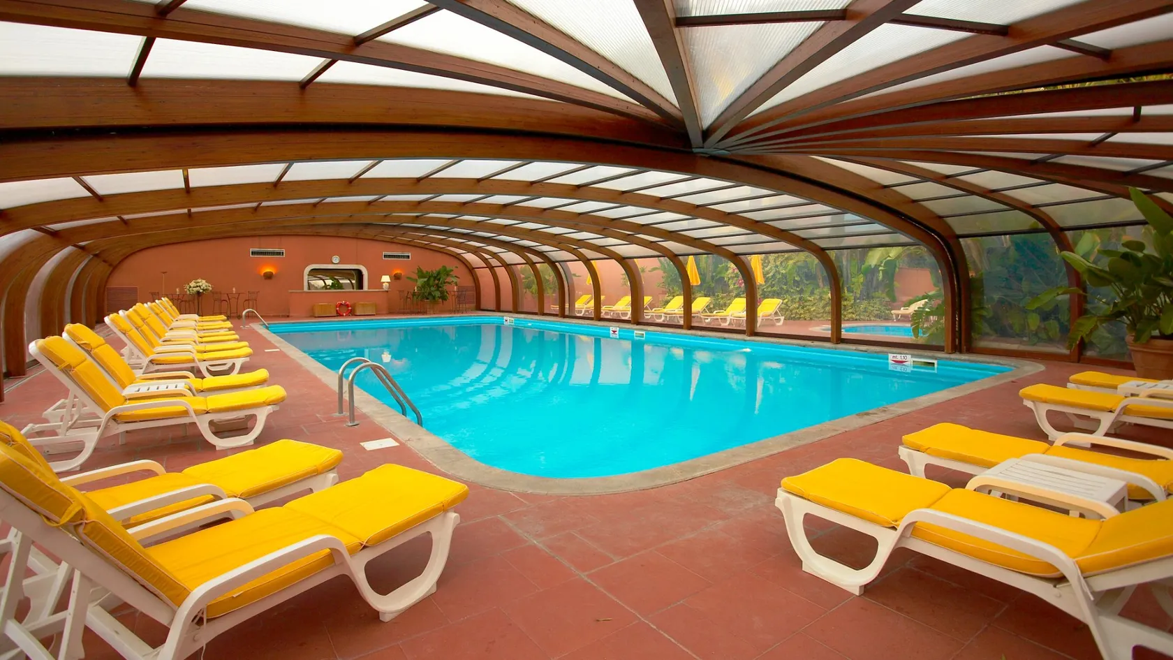 - Amidst palms and colorful bougainvillea, a peaceful Swimming Pool, is accessible from March to October