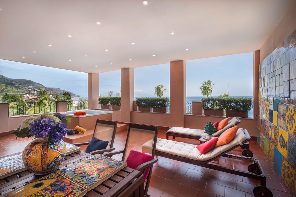 The 4-star Hotel Caparena in Mazzeo, Italy offers a variety of luxurious room types, including standard, superior, and deluxe rooms, as well as suites. All rooms feature modern amenities, such as flat-screen TVs, air conditioning, and complimentary Wi-Fi. Guests can also enjoy a range of services, including a restaurant, bar, spa, and fitness center.
