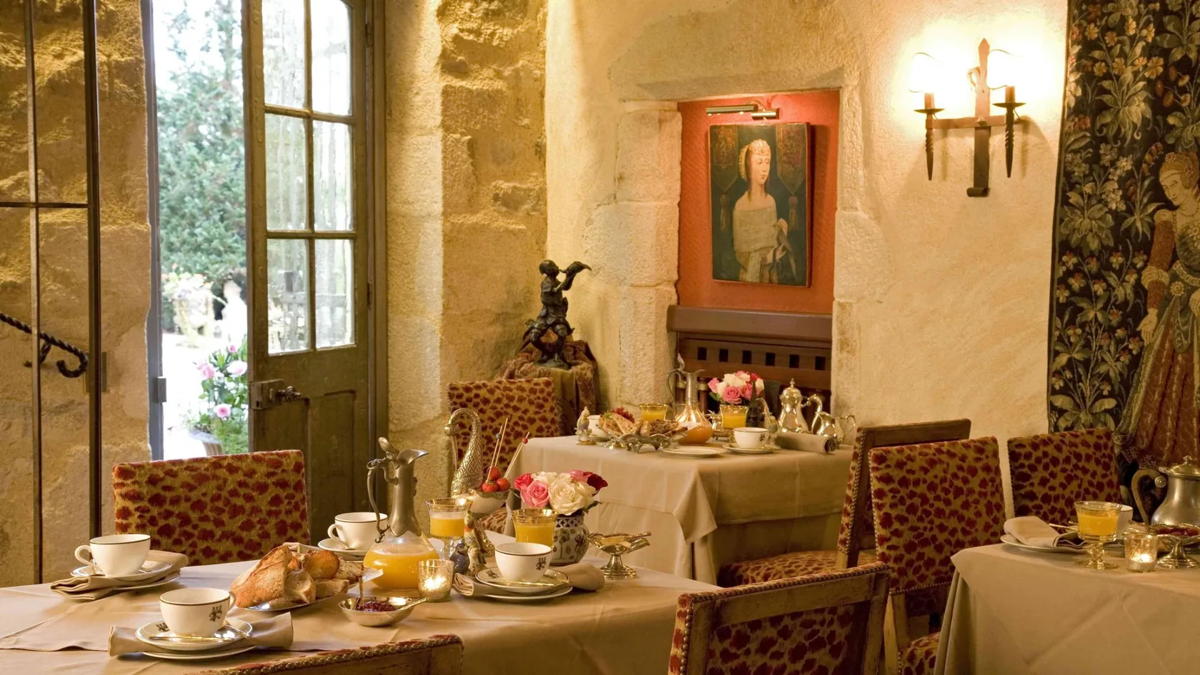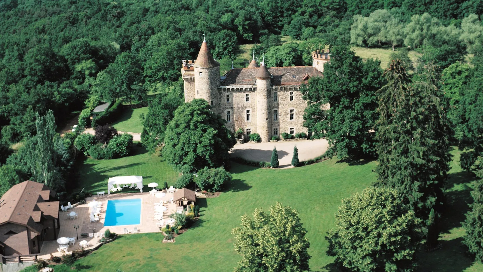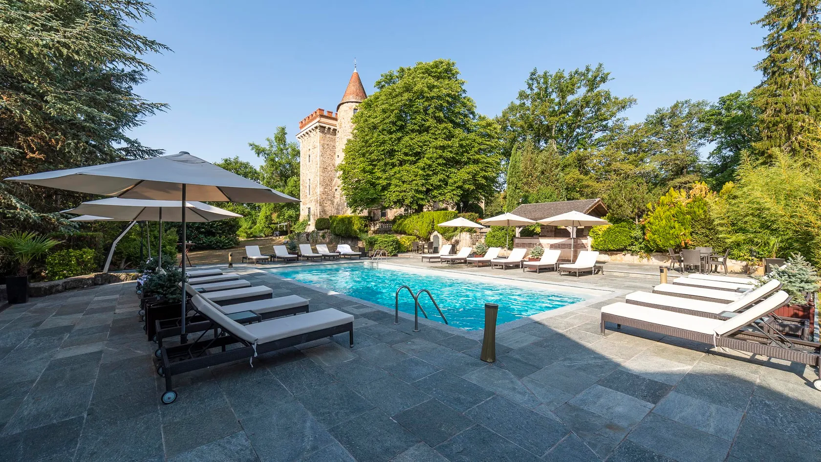 Elegant and fine, the atmosphere of the rooms is the result of a sweet combination between a modern comfort of high quality and a scenery that respects the ancient and historical sites. Each of the 19 rooms are personalized, decorated in a typical French style with antique furniture and a wonderful view over the green park of 15 hectares.