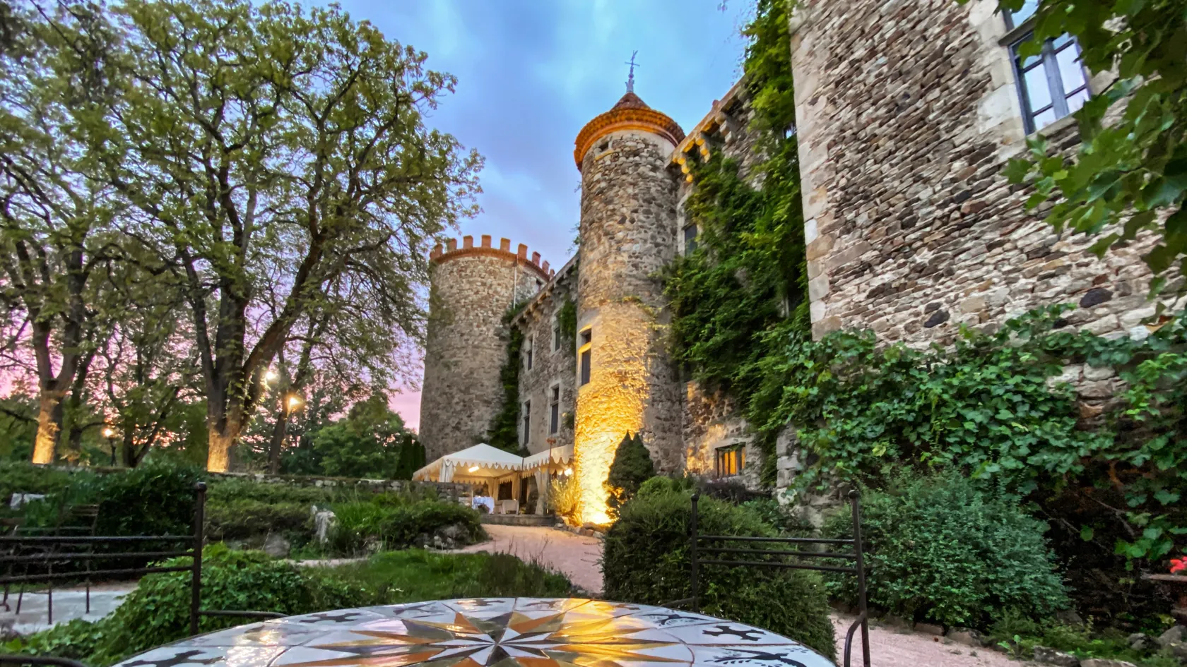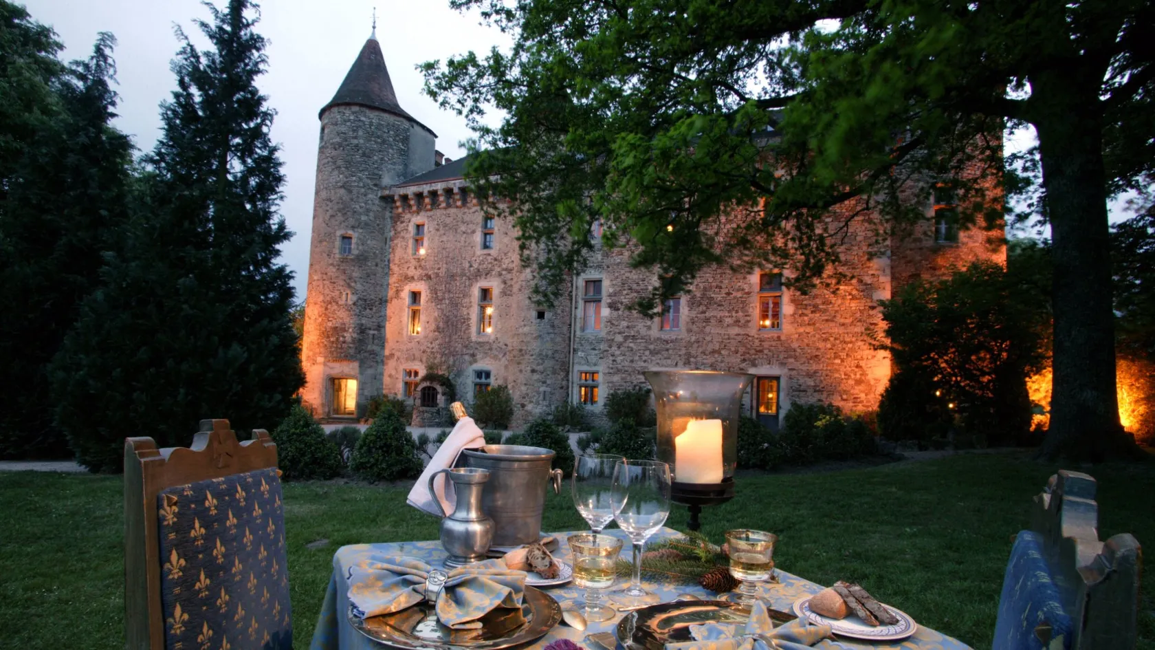 - A gourmet lunch can be served on the ground floor of the castle or on the terrace, the general menu can be prepared by the chef Mathieu Barbet (starter, appetizer, main course, dessert and delicacies), wine chosen by our sommelier, mineral water. and coffee)