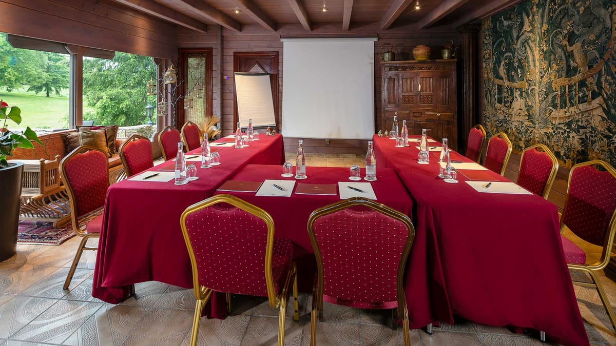 - All equipment is included: mineral water on the tables, flipchart, notepads, pencils and on request TV, DVD player, video projector and screen