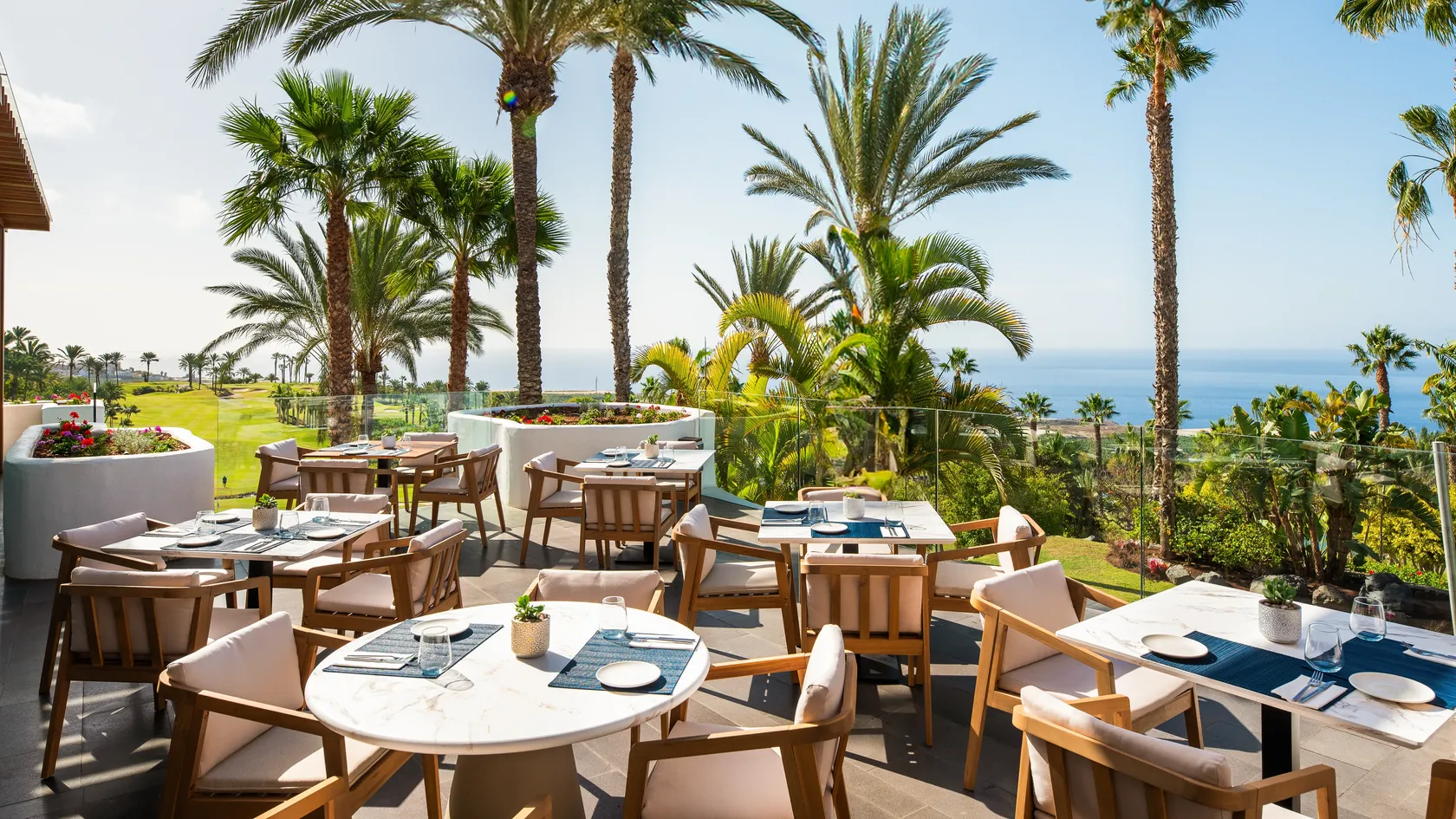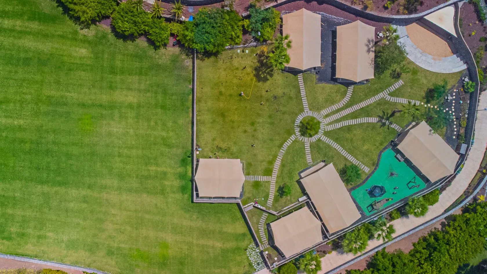 - More than 2,000 m² (+21,500 sq. ft.) of open space surrounded by native vegetation such as banana trees typical of the Canary Islands and the green mantle of a golf course, where children can play, learn and breathe fresh air