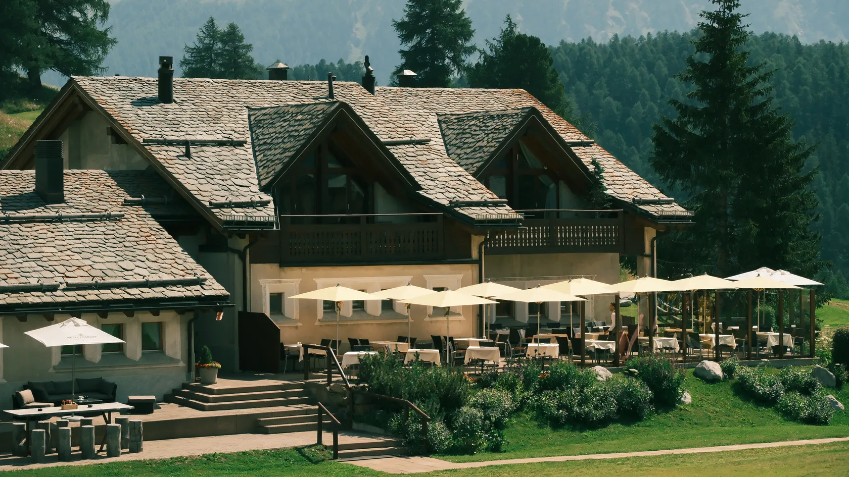 - Half board: Guests can dine at Chesa al Parc (Amaru by Claudia Canessa, Sunny Bar by Tom Booton, Pizzeria or Kulm Country Club by Mauro Colagreco. Credit up to CHF 45 / per adult for a la carte meals. Only meals, drinks are paid separately