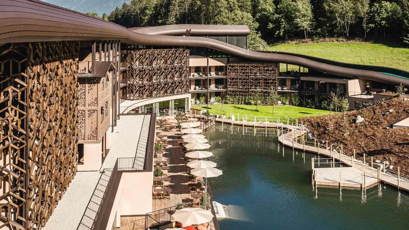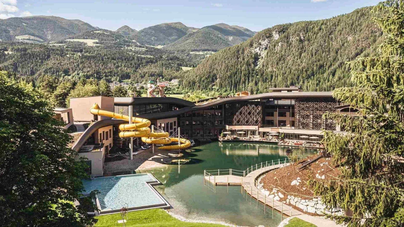 - Extended natural lake & the coolest hotel pool complex in South Tyrol