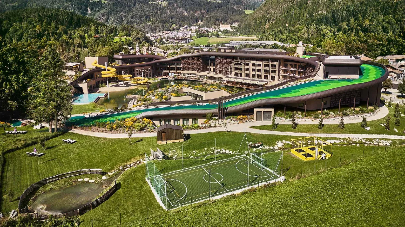 - Endless water fun with the largest indoor water slide in South Tyrol, large infinity pool and sandy beach