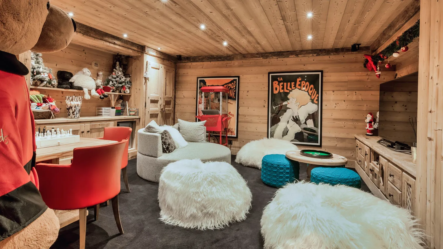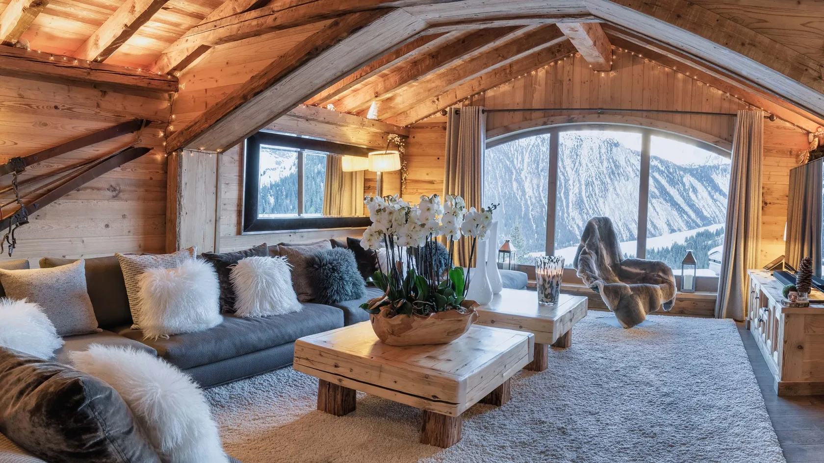 The chalet has seven en-suite bedrooms sleeping up to 14 guests (including children) in extreme luxury and includes a large master bedroom suite with Jacuzzi tub. The top floor is dedicated to the living area with a spacious lounge, dining area, bar and terraces.