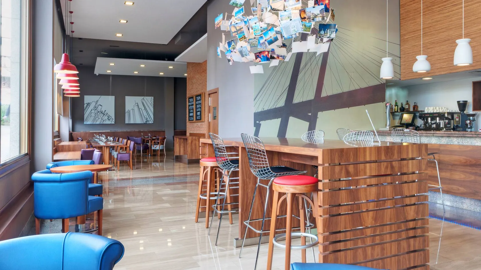 5 bright and modern room types, ideal for exploring a city with such charm. They provide comfort with two single beds or a king-size bed, a living room (in family rooms - with a sofa bed), a desk and a fully equipped bathroom. They also have a TV, a safe and a minibar.
