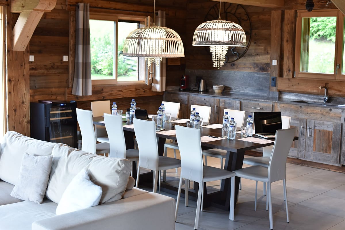 - 2 "conference" lounges, with a cozy atmosphere, fireplace, and mountain views, capacity of 26 people (including flipchart, projector and screen, high-speed internet, notepads...)