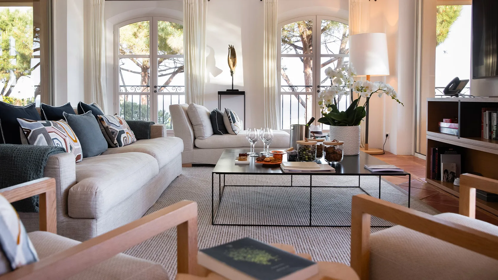 A far cry from the anonymous standards replicated worldwide, the villas at La Réserve Ramatuelle flaunt an architecture typical of this legendary peninsula that is a unique site around the Mediterranean. Each exudes a subtle, friendly and warm authenticity. Soft terracotta tiles, immaculate white walls, crisp linen and other natural fabrics that dance with light and shade, pure and contemporary furniture lending a modern touch… The atmosphere is filled with the welcoming atmosphere of a true southern family home. A place with a true soul that immediately makes one wish to settle in, kick back and unwind…
