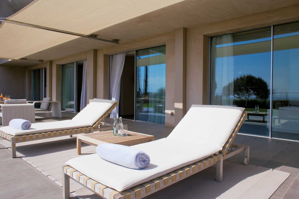 The 19 suites and 8 rooms have their own terraces in direct sunlight and ranging in size from 25 to 190 m2, some with a private garden fragrant with southern scents. Beyond the terraces, the openings have been designed to allow guests to benefit from every opportunity to admire the view over the Mediterranean, at the end of a corridor, through the window in the bathroom… Carefully placed windows frame the countryside, like a painting that is different every time.