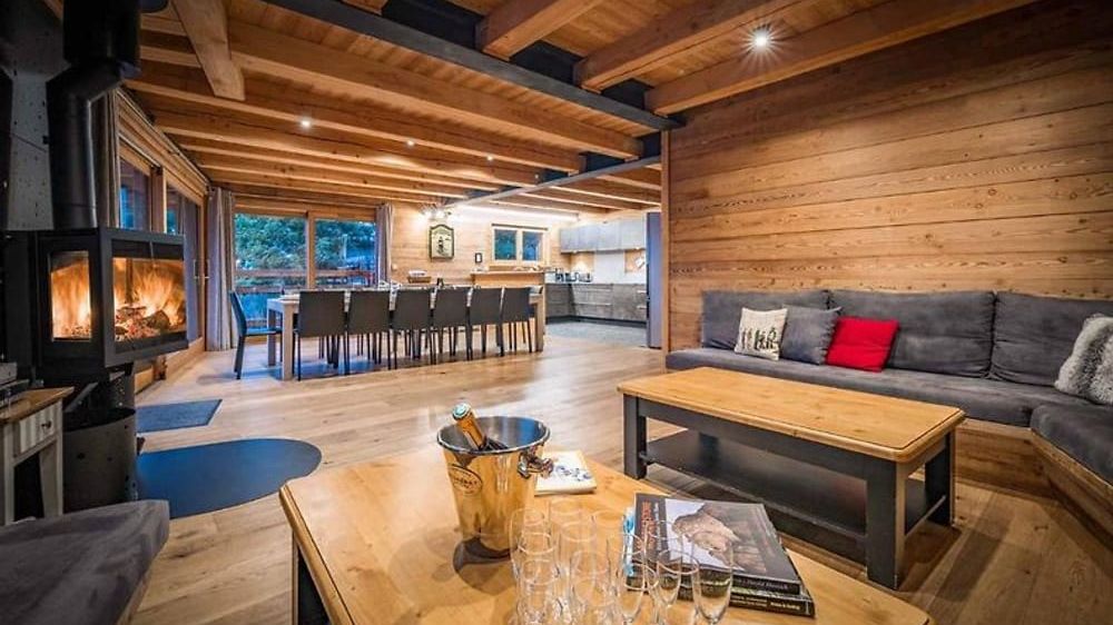 This spacious 7 bedroom chalet can accommodate 15 people. It extends over three floors. The interior is nicely decorated, in a warm and modern Alpine style.