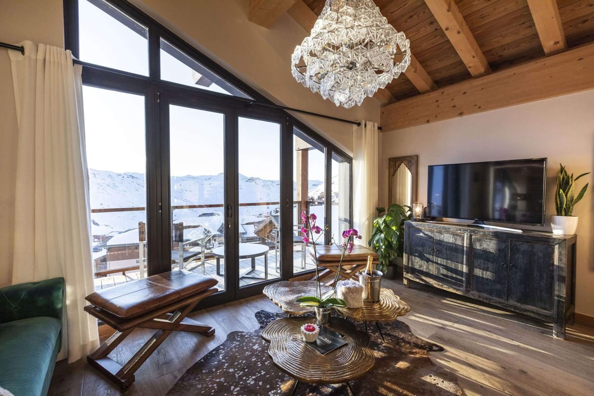 Through a large picture window, you can admire the mountains and the ski resort all throughout the day, and bathe your room in soft lighting.
