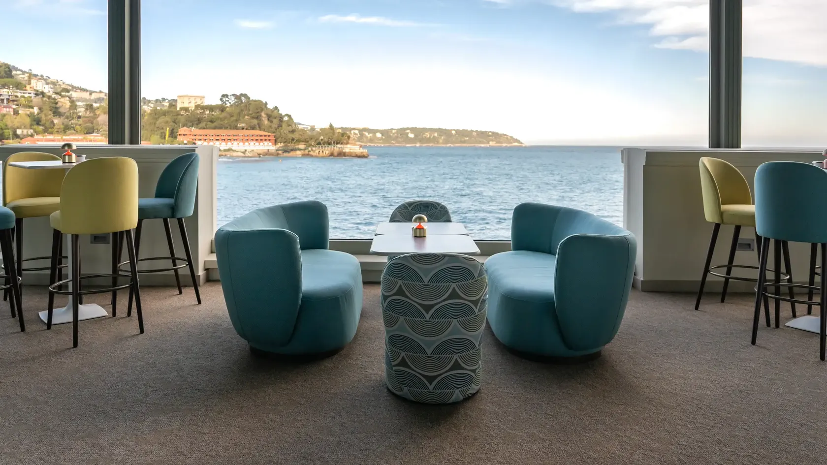 - A lounge bar with sea-view terrace: the Blue GinIndoor and outdoor pool heated all year round