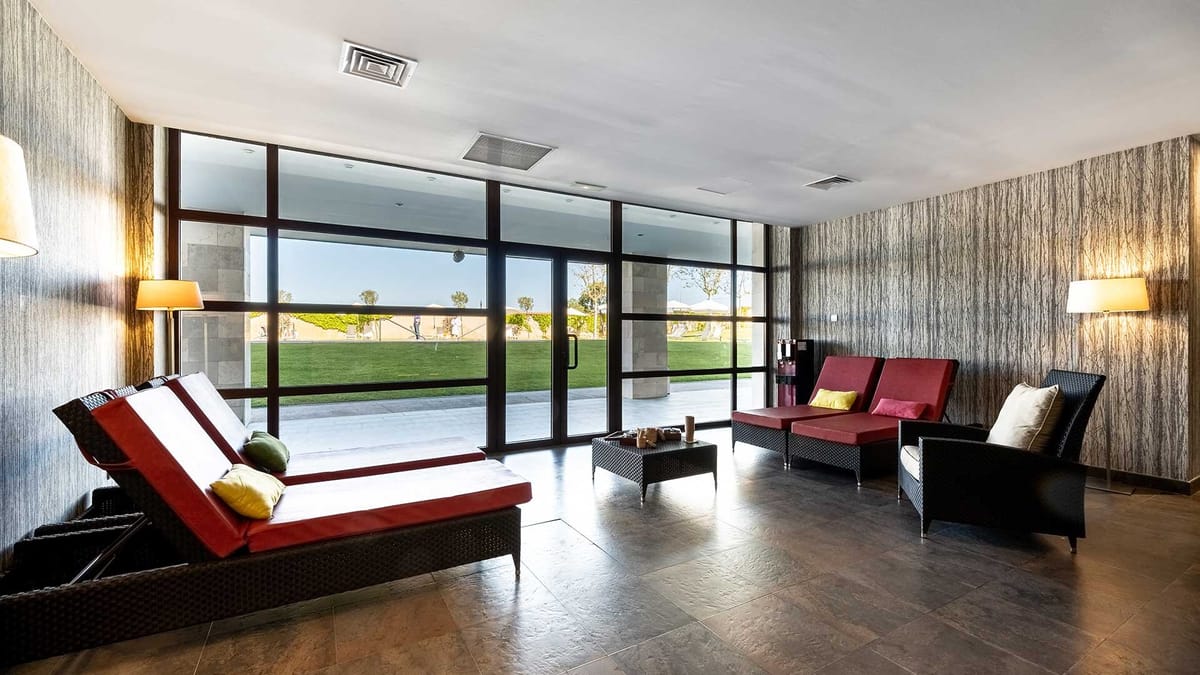 - Thermal area, wine cellar, outdoor pool, paddle tennis court, gym and private gardens