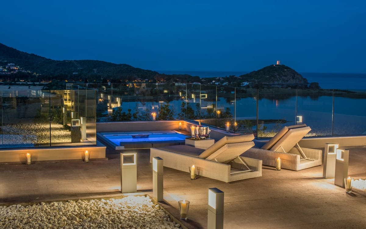 Notesfurnished terrace with a table, chairs, and a chaise-longue, overlooking the lagoon and the sea, free Wi-Fi, HDTV, espresso machine, Tea making facilities, minibar