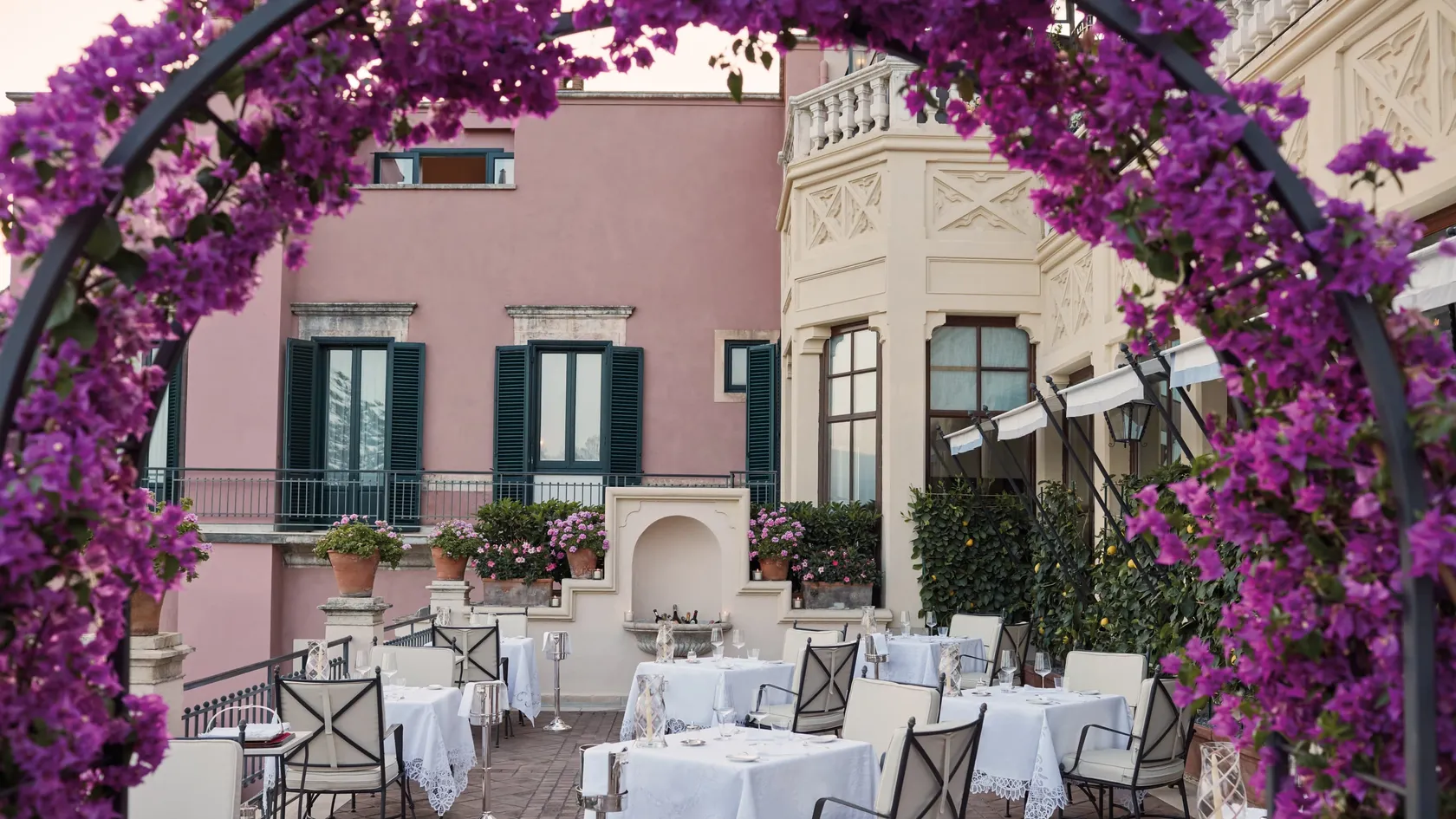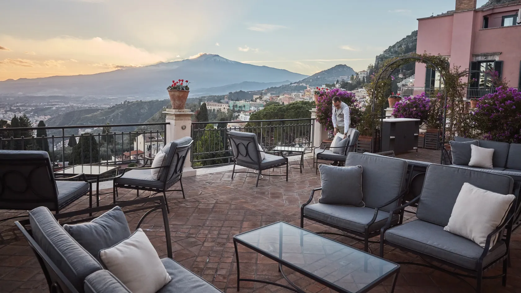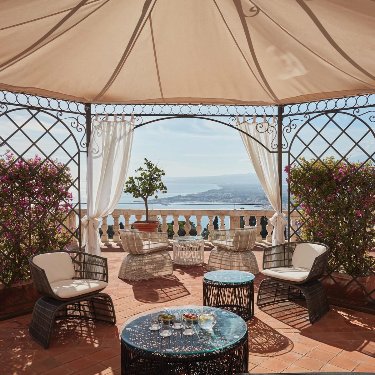 47 rooms and 24 suites, most with terraces or balconies affording spellbinding views over the coastline. The décor evokes traditional Sicilian style with a charming blend of elegance and comfort. As well as the Timeo Building, guests can stay in Villa Flora, a country house just 50 metres (164 feet) away.