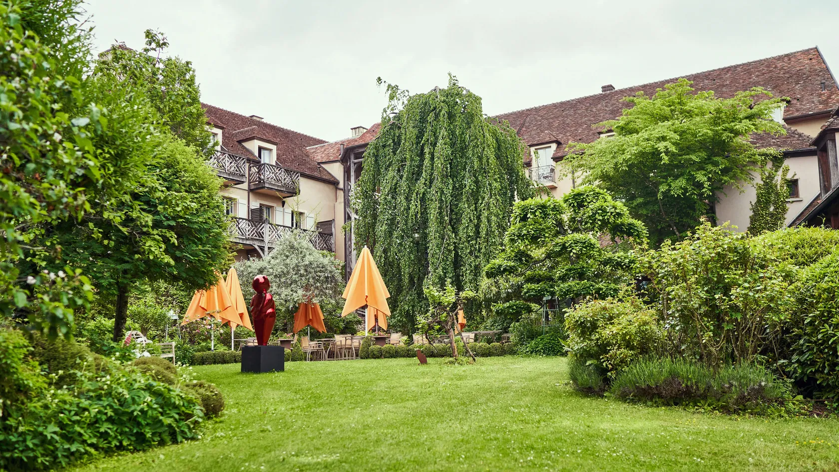In June 2022, the hotel rooms were renovated. Conceived as cocoon suites, they are designed to highlight the characteristic colors and materials of Burgundy. The Relais Bernard Loiseau building is U-shaped with wings housing 34 rooms, a restaurant and a spa. At the center of the building is a botanical garden designed by Dominique Loiseau, which gives rhythm to the seasons. Arnaud Behzadi decided to emphasize this connection with nature, on the one hand, and to ritualize and depict the experience of sleep, on the other. The bed becomes a treasure trove of dreams.