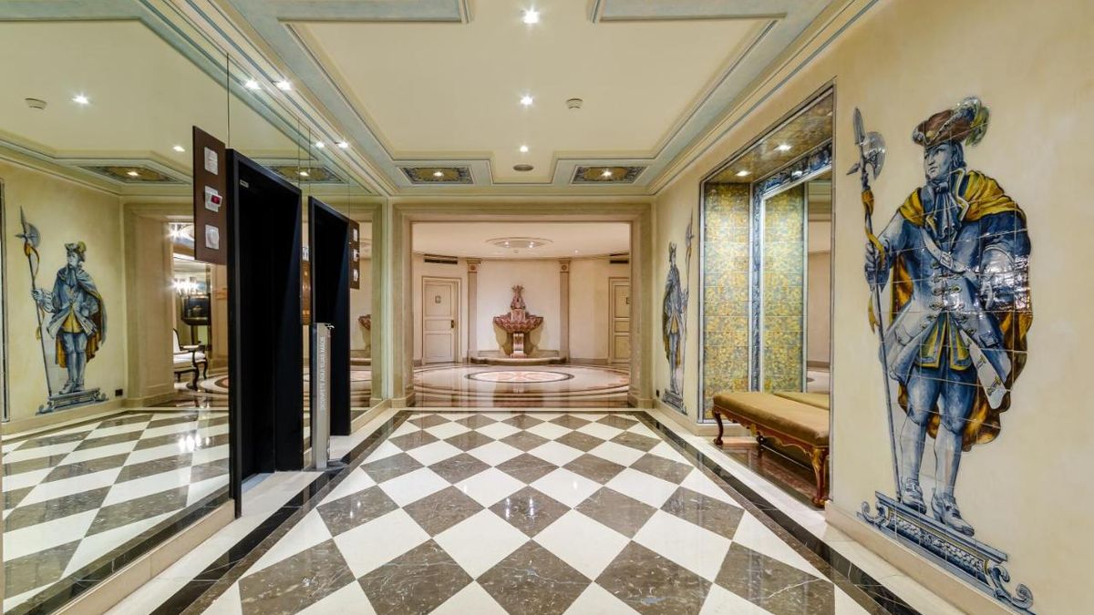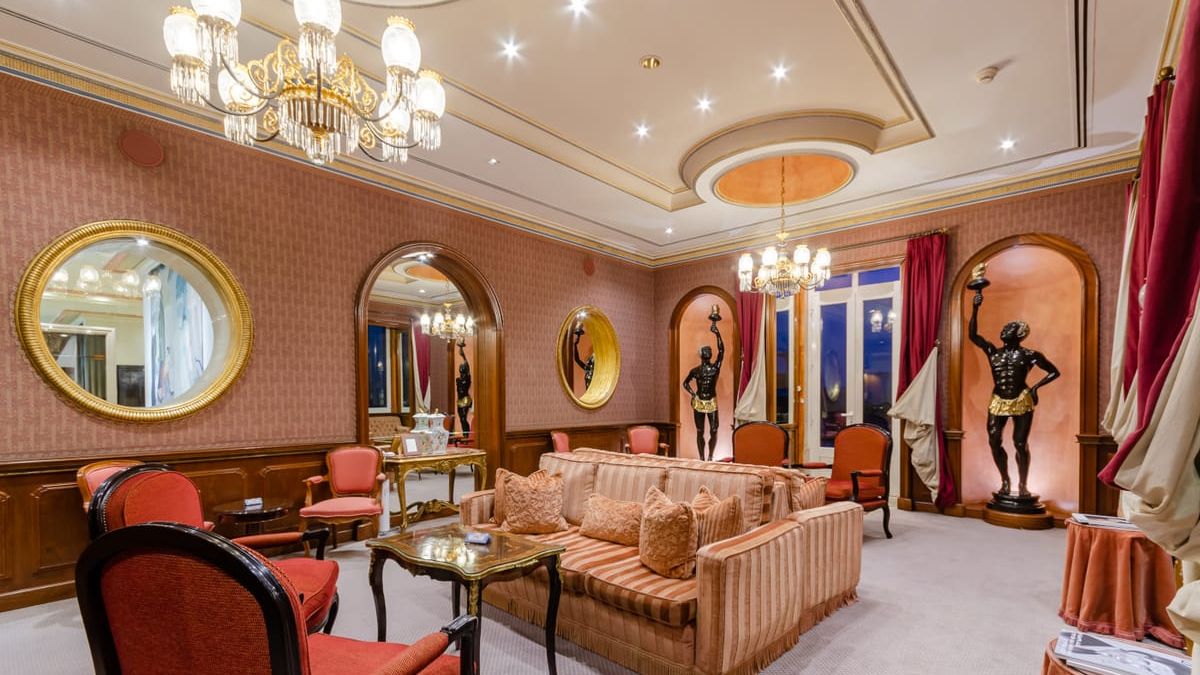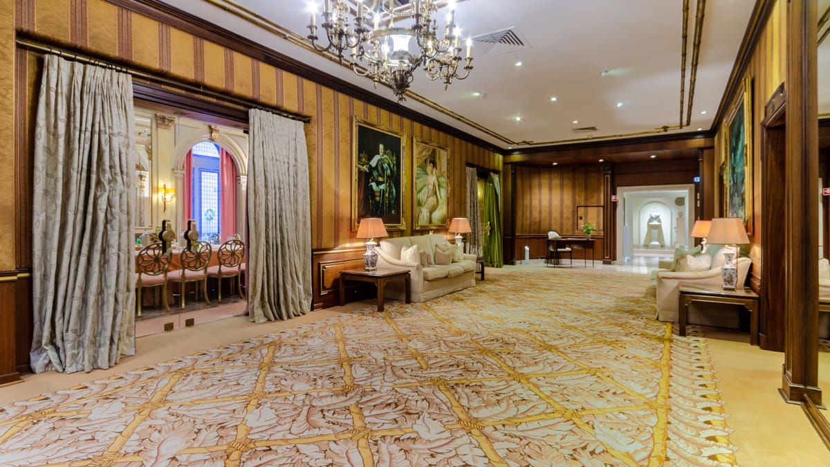 The Count of Valenzas Suite and five other Deluxe Rooms are located on the 5th floor of the palace, the noble floor. These rooms have been carefully renovated using lamps, mirrors and furniture recovered from the original palace furniture. The golden leaves on the walls of Count Valensas's suite (originally part of the ballroom) were restored, as were the two large mirrors placed in the living room.