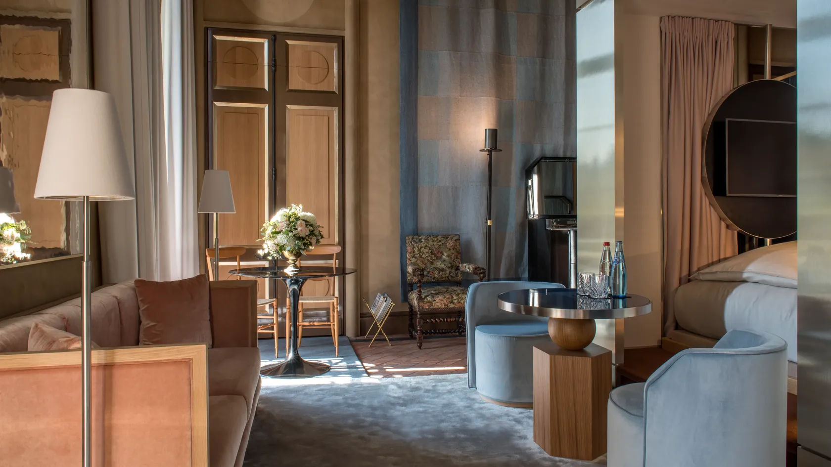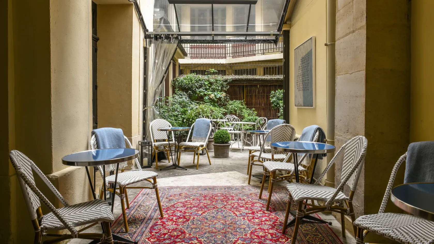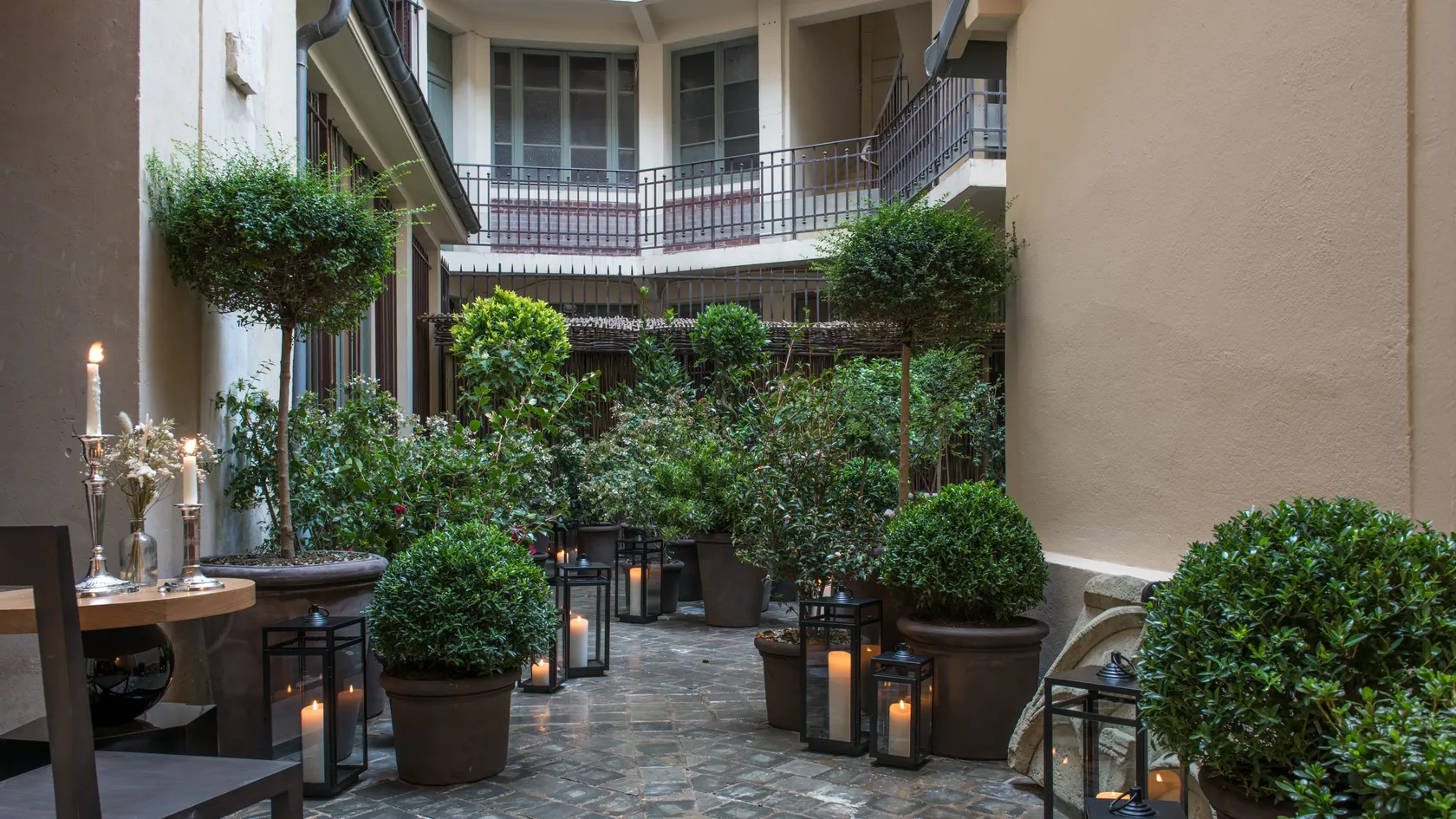 In the royal setting of the famous Place des Vosges, EVOK stops time, bringing poetry to the national heritage of the former Montbrun Hotel. Respecting ancient forms and volumes, the famous trees and arcades fit into the intimate atmosphere of the rooms. Overlooking the Louis XIII gardens and pink brick houses with slate roofs, the twelve rooms and suites of this 17th-century residence now offer private spaces, a tea room and Roman baths, reimagined over four floors by architects Lecoadic and Scotto to create a noble sense of authenticity.