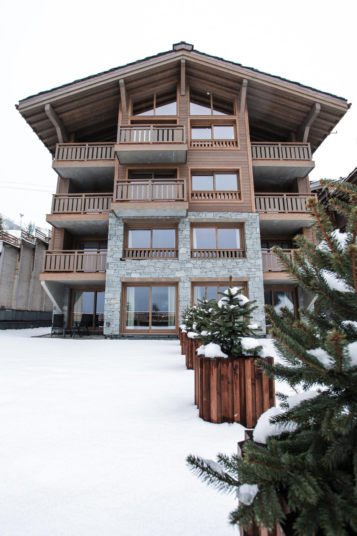 Aspen Lodge has 13 apartments, including two high-end rental apartments for six to eight people. Each apartment has a fully equipped and furnished kitchen, a terrace with views of the Tarentaise Valley, as well as free Wi-Fi and a private underground parking space.