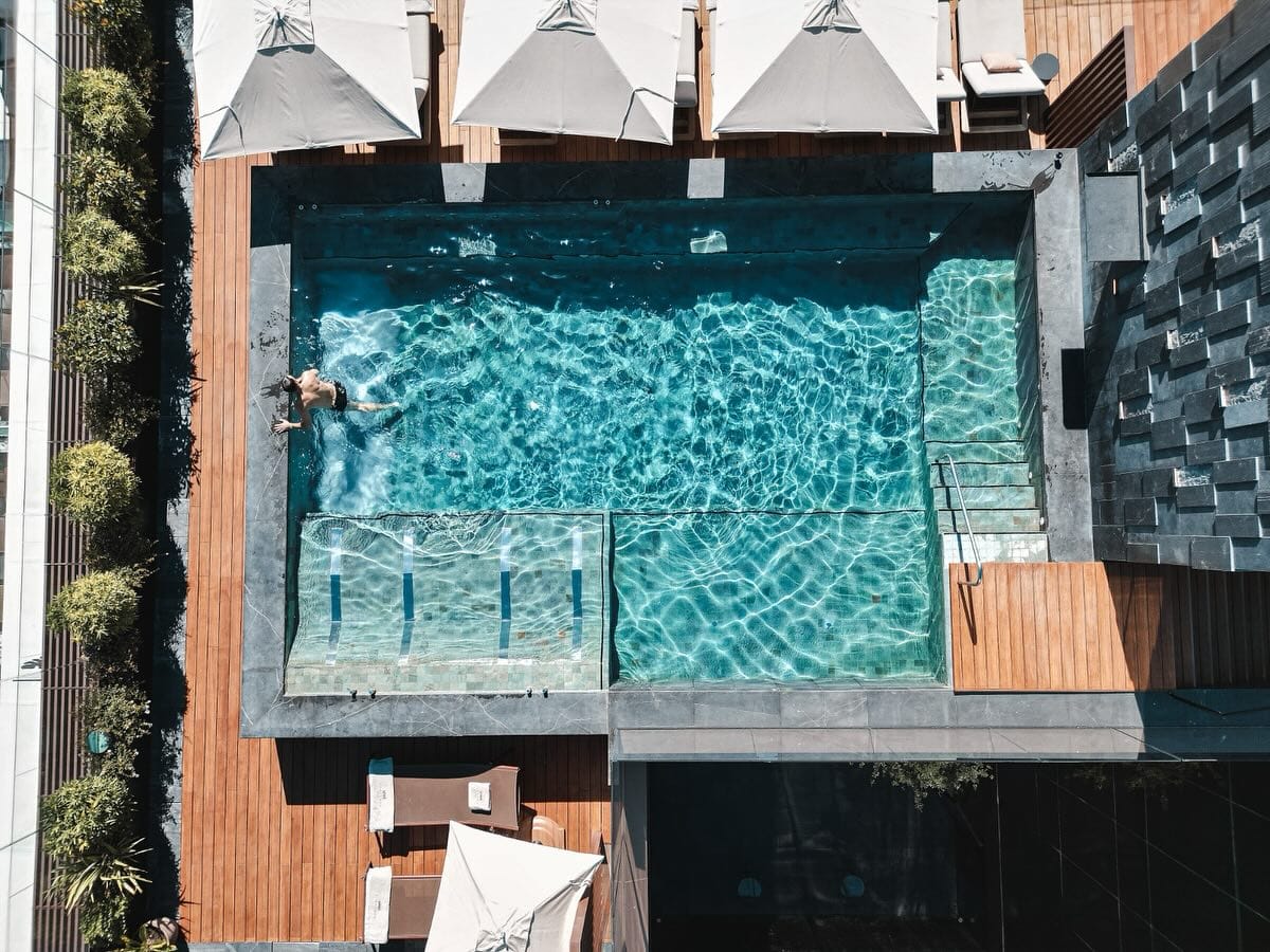 - Rooftop urban wellbeing oasis including a pool with panoramic views