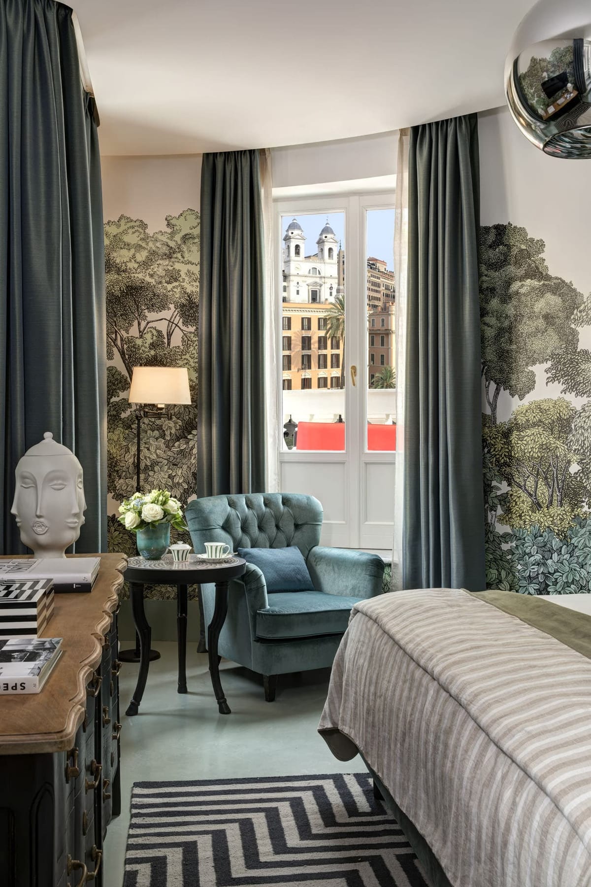 In Piazza di Spagna, five private apartments in an 18th-century palazzo. Above: a majestic rooftop terrace overlooking the Spanish Steps. Inside, the elegant design of Tommaso Ziffer and Olga Polizzi. The dedicated House concierge is always on call, and just across the square, guests can enjoy dining and spa services at the Hotel de la Ville. A contemporary offering built on the rich Italian tradition of Rocco Forte.