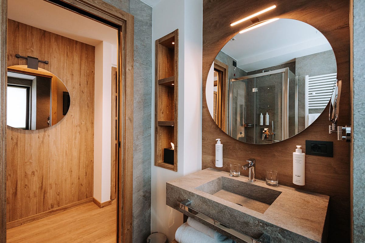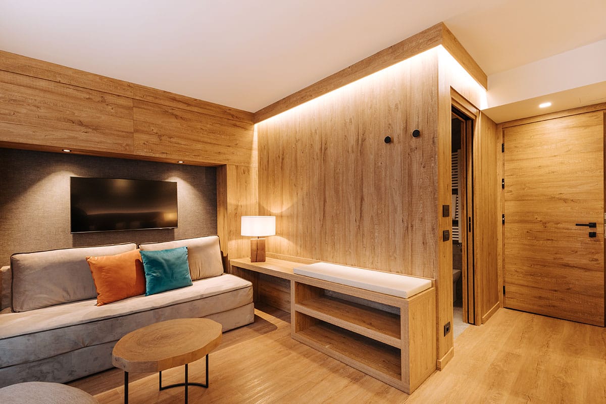 The intoxicating scent of wood, the perfect harmony of colours and lights, large windows to enjoy the breath-taking Alps from dusk till dawn.