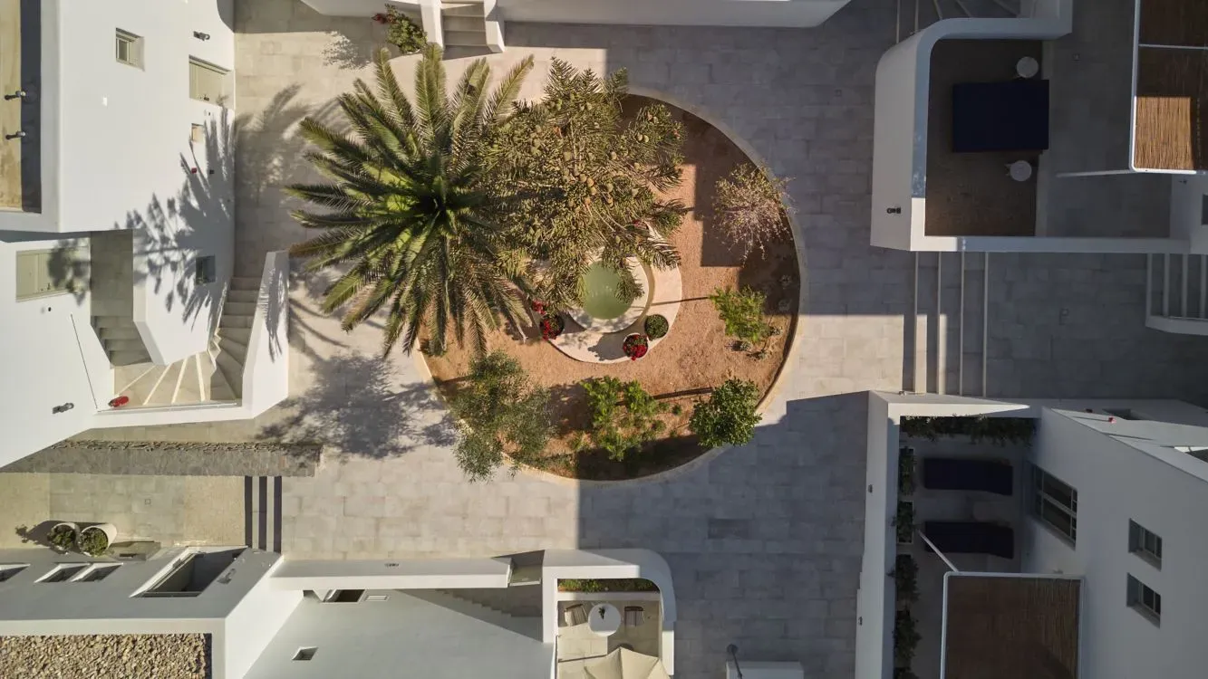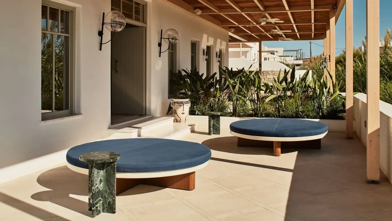 Balancing the traditional textures and local stone with carefully curated decoration, the suites of Cosme envelope guests in a luxurious narrative of Paros. Complete with terraces shaded by wicker pergolas, Cosme's suites offer indispensable relaxing views towards the surrounding scenery.