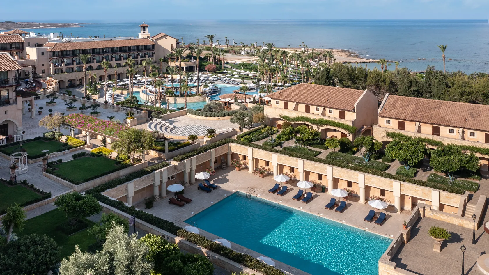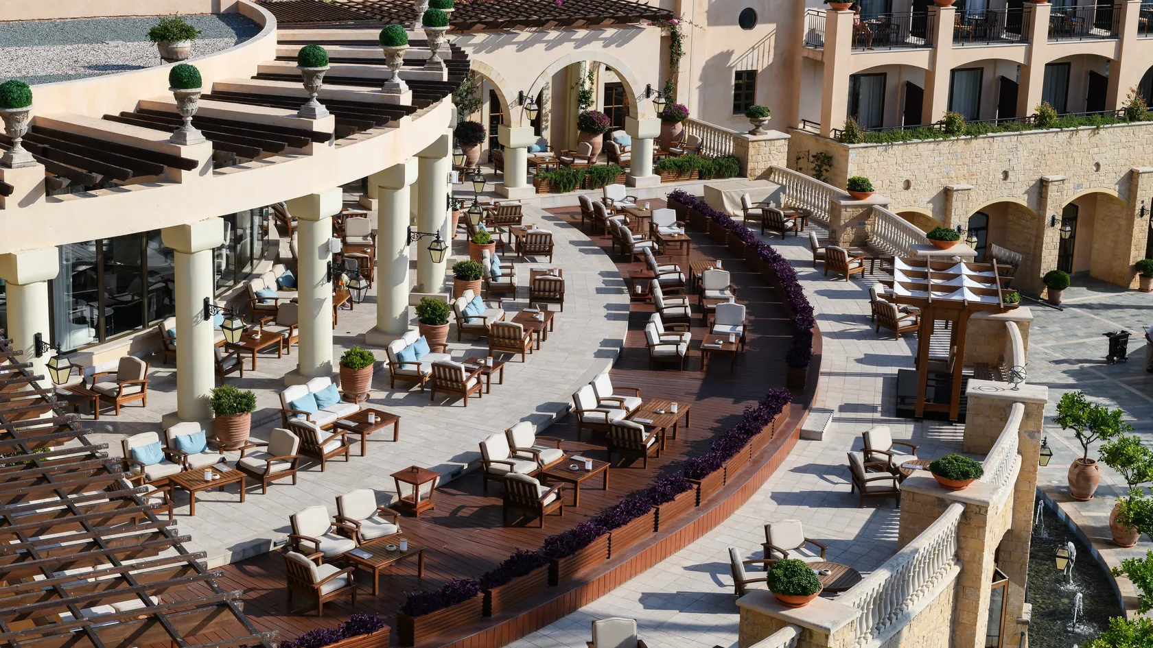 Elegant furnishings in a tranquil atmosphere provide the ultimate in serenity and privacy. Guests can choose from 250 rooms and suites, each offering pure comfort and impeccable style for their stay in Paphos.