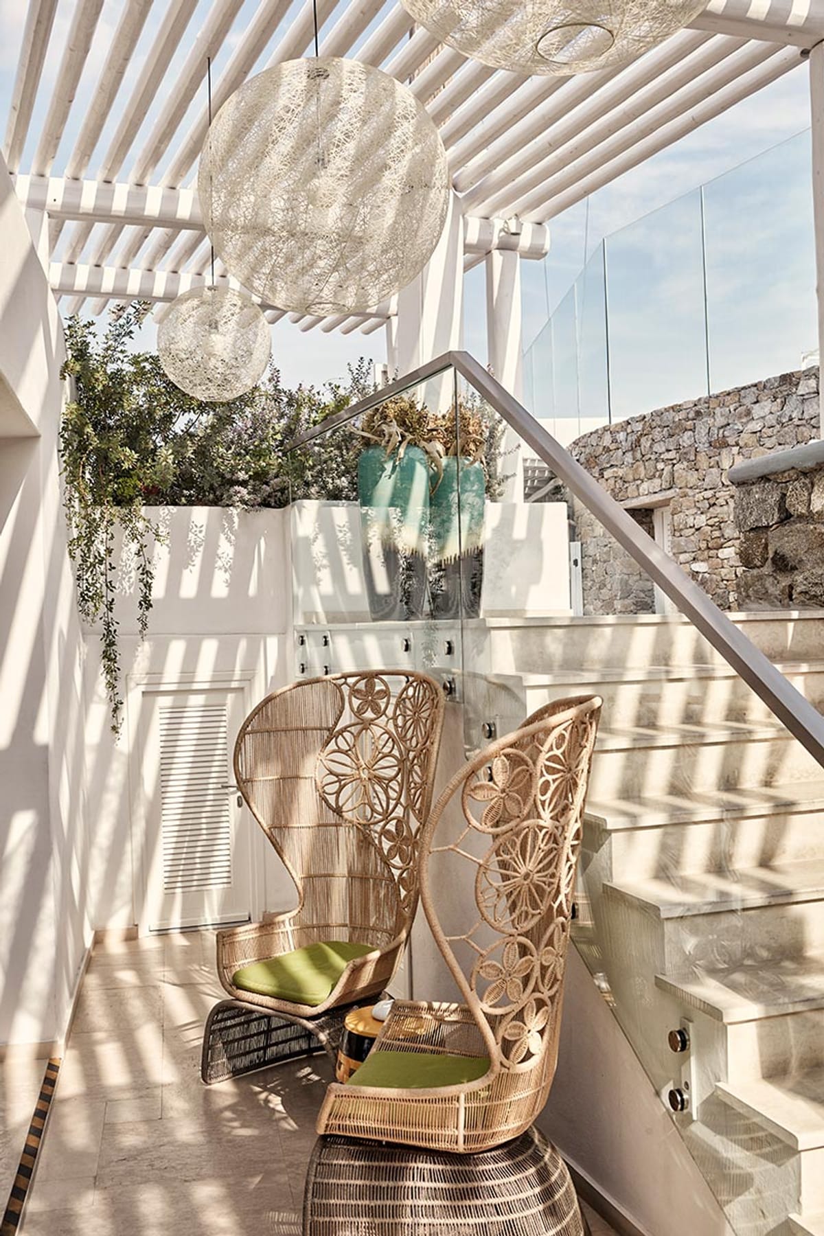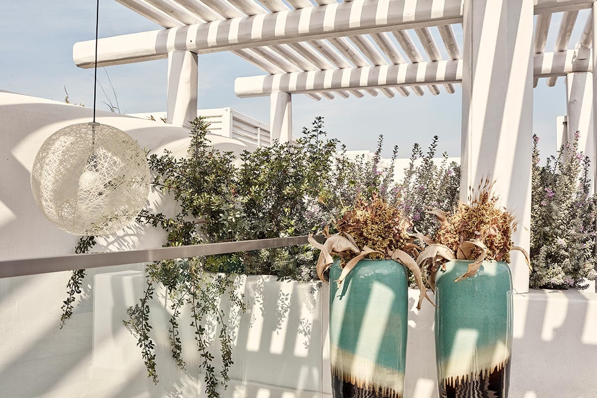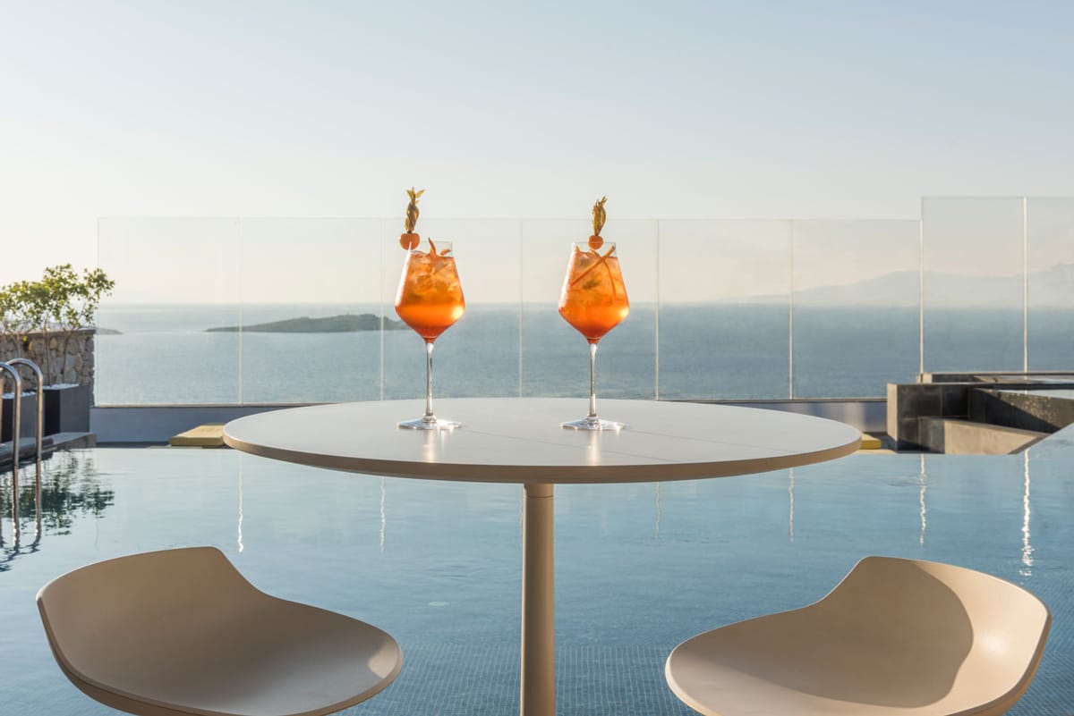 The rooms and suites at Myconian Korali are furnished with unrivalled luxury, setting an exceptional standard as one of only three Relais & Châteaux hotels in Mykonos. Sophistication lies in the details of the minimalist aesthetic, complemented by a backdrop of white marble, the warm tones of exquisite designer furniture and fabrics, chic ethnic pieces and original works of art. Balconies and terraces with magnificent views of the Aegean Sea are enlivened by the play of dappled light filtering through the pergolas and enjoy the privilege of private pools or Jacuzzis. Guests need not expect anything other than every conceivable 5-star comfort, including prompt room service and excellent housekeeping from discreet and attentive staff.