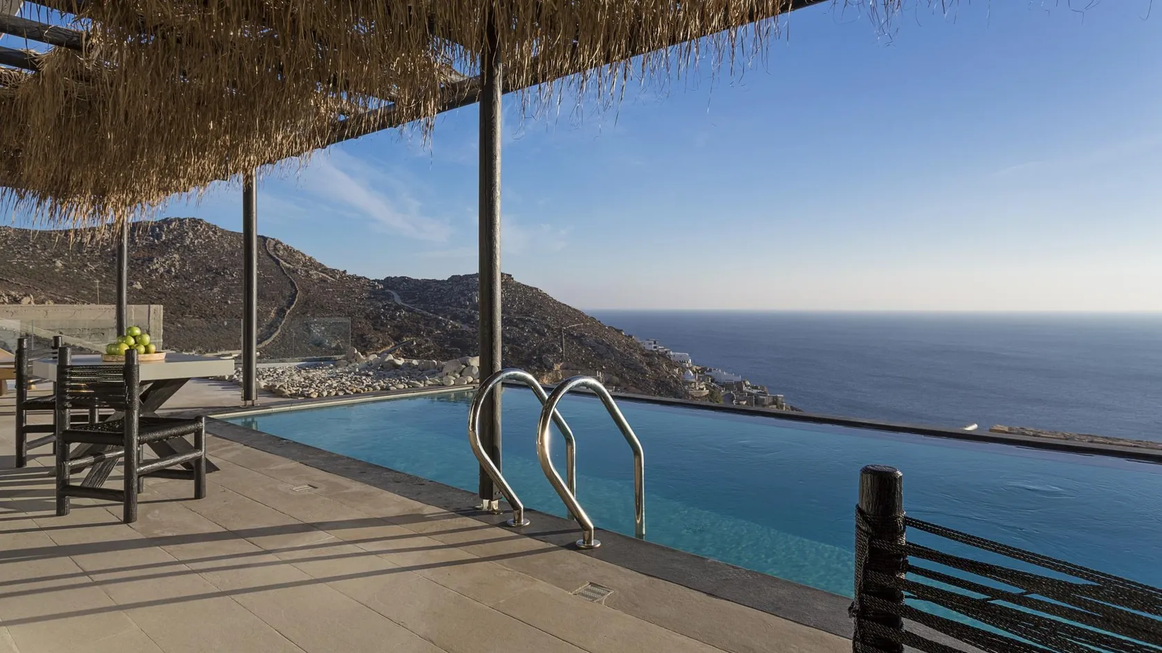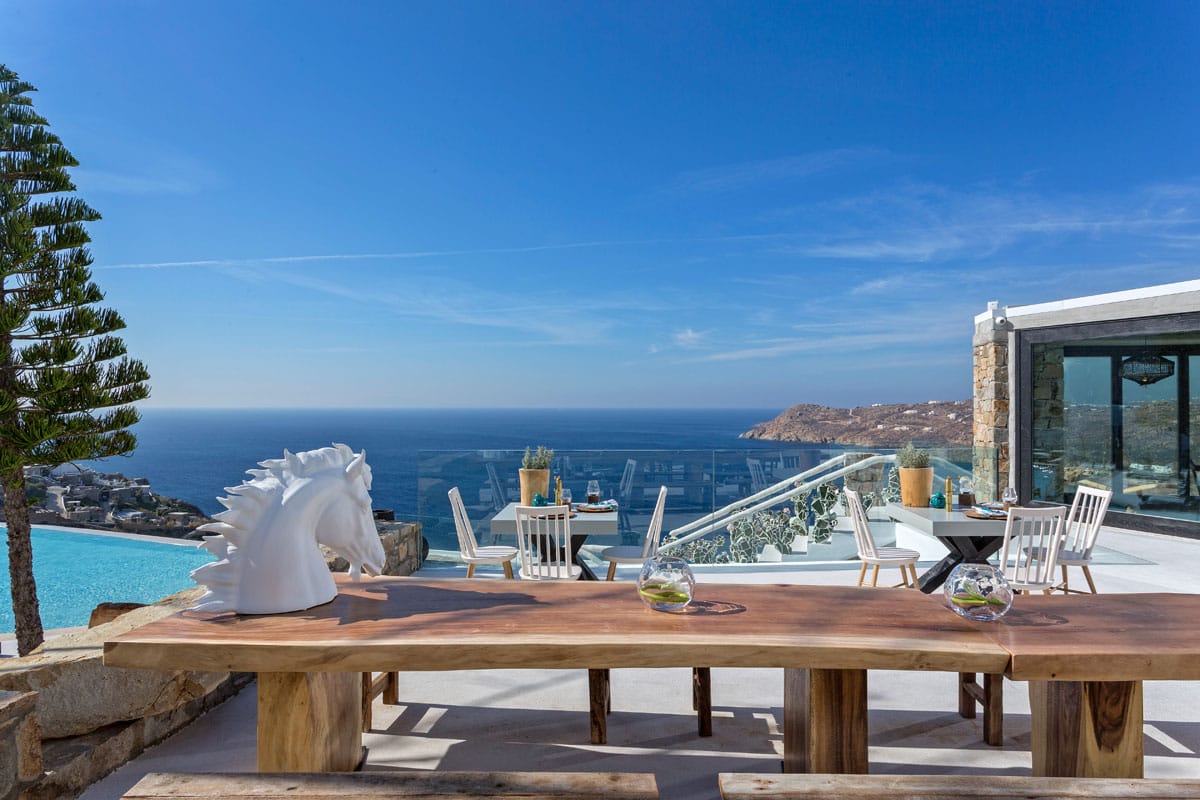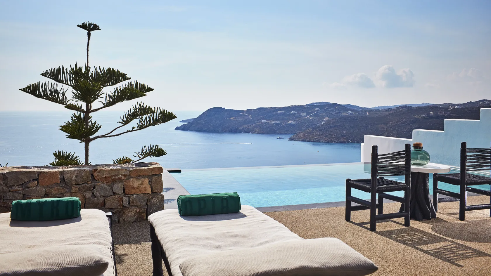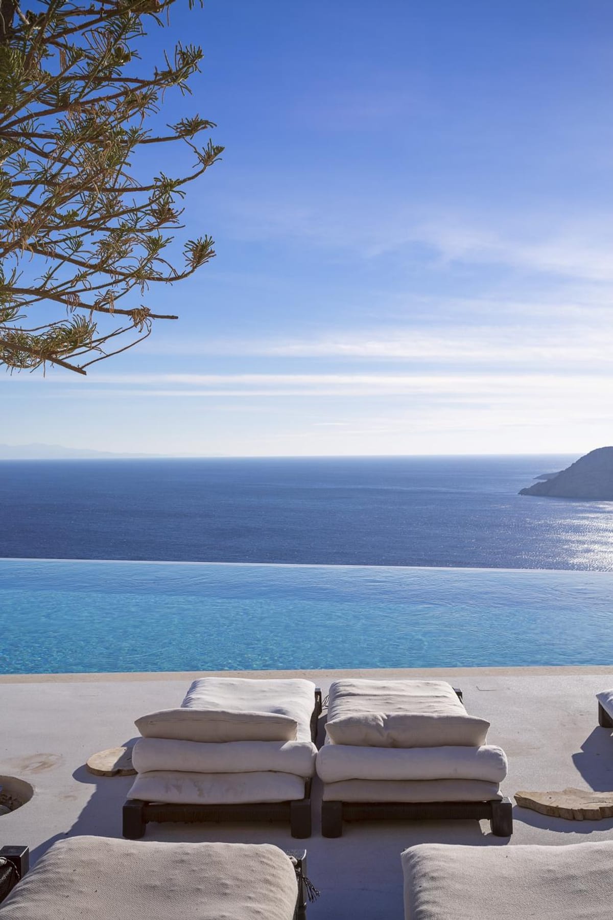 Spacious master bedrooms and elegant living rooms feature carved stone, soft natural fabrics and beautiful designer accents. Villas include fully equipped kitchens and dining areas, as well as furnished terraces with a large private infinity pool, barbecue areas and, of course, sea views at every turn.