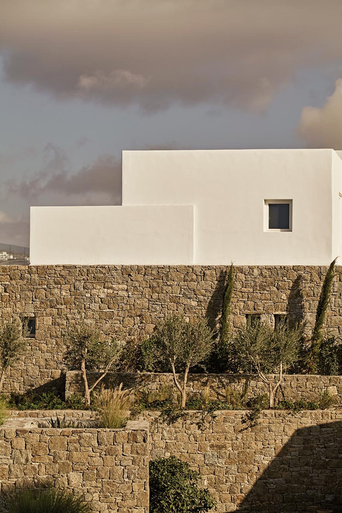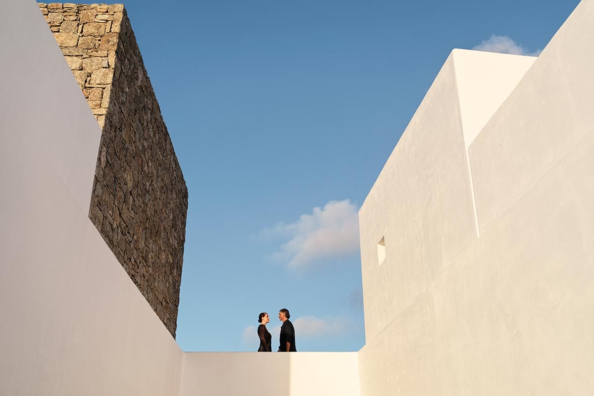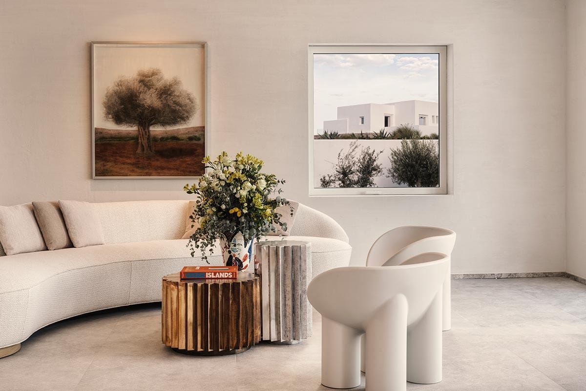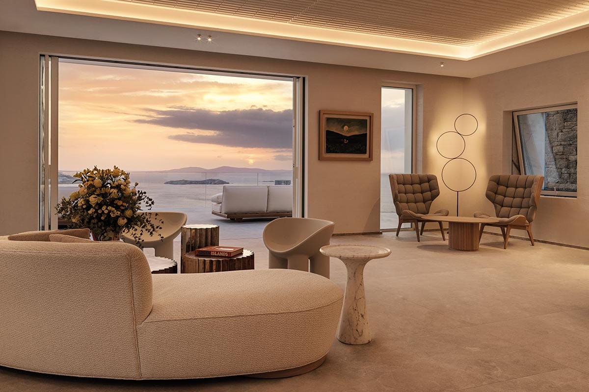 Deos was inspired by the desire for a way of life that enhances the intimacy between nature and the authentic self. A contemporary architecture of refined simplicity merges the inner and outer spaces holistically, borrowing from the traditional Cycladic line to follow the landscape intimately. This connection to nature is enhanced with rustic walls made from rocks quarried on site, generous planting of indigenous flora, and scenic apertures that frame spectacular views. The customised interiors equally draw on natural textures to exude a warm minimalism.