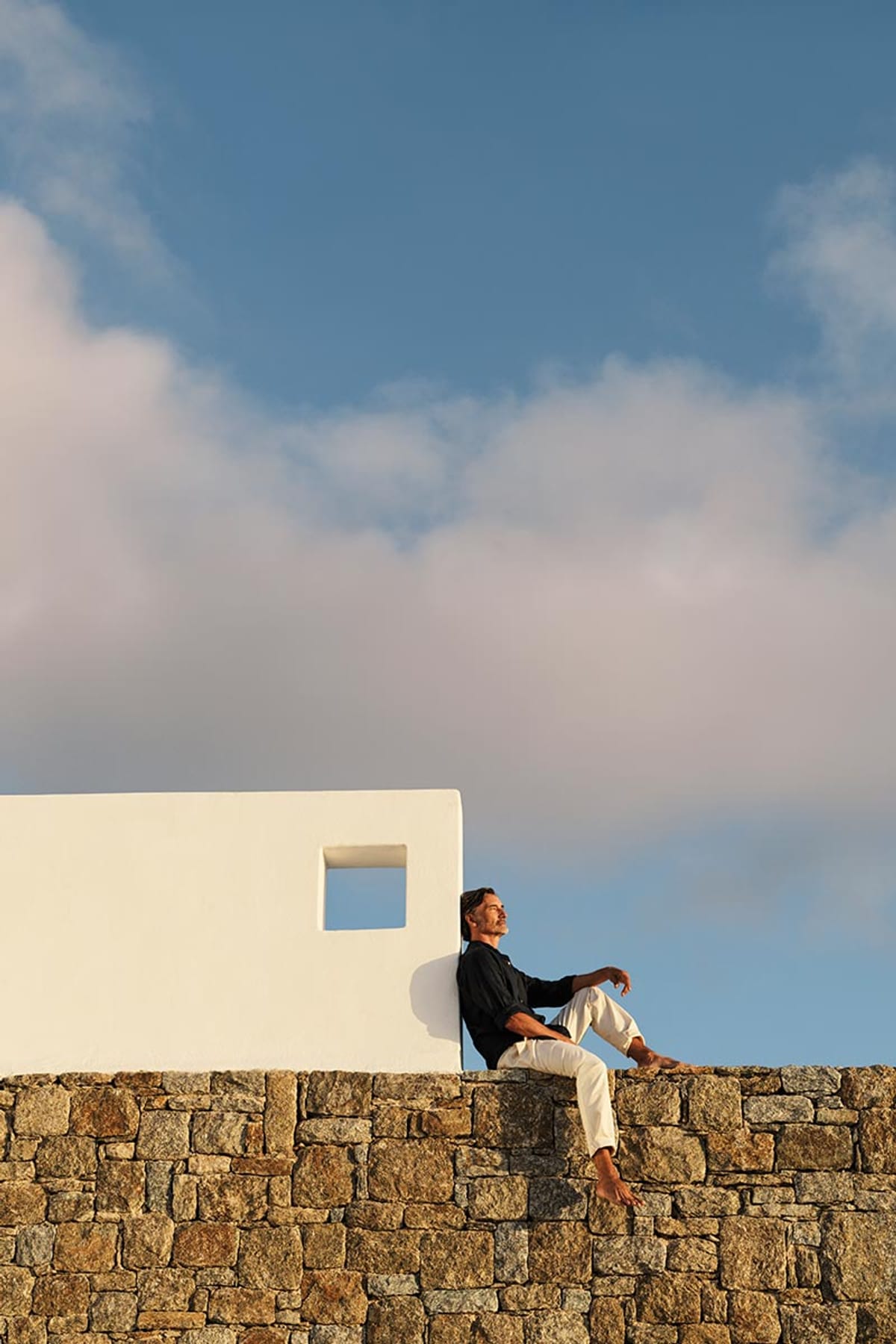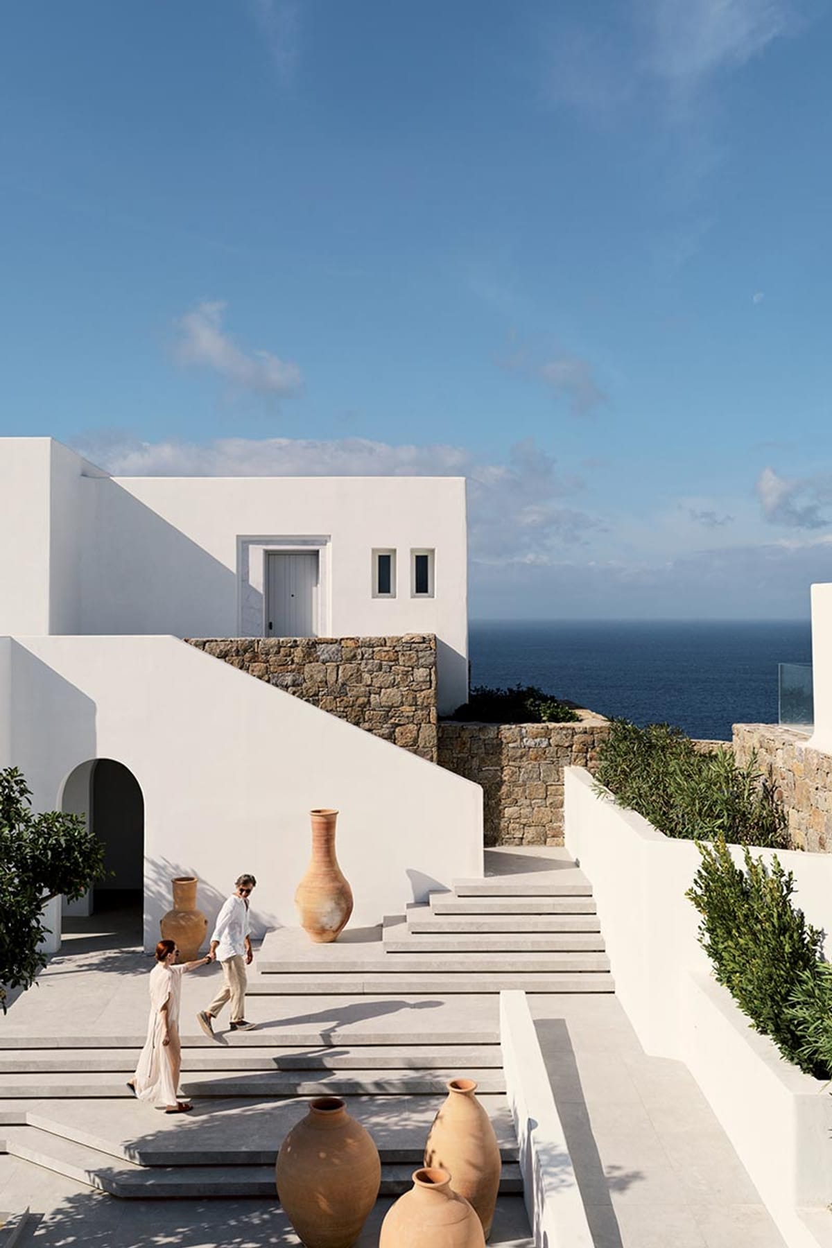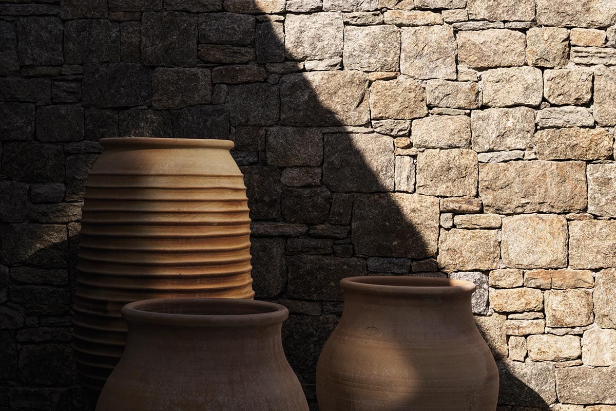 Deos was inspired by the desire for a way of life that enhances the intimacy between nature and the authentic self. A contemporary architecture of refined simplicity merges the inner and outer spaces holistically, borrowing from the traditional Cycladic line to follow the landscape intimately. This connection to nature is enhanced with rustic walls made from rocks quarried on site, generous planting of indigenous flora, and scenic apertures that frame spectacular views. The customised interiors equally draw on natural textures to exude a warm minimalism.