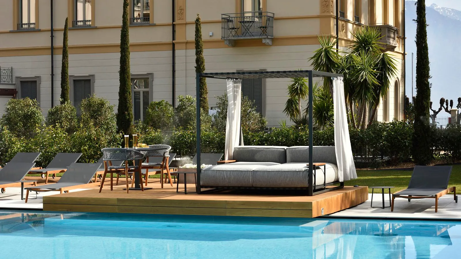 The rooms and suites feature a modern and innovative design, rich in detail: many offer a beautiful view of Lake Como and its charming corners such as Bellagio and Varenna; others overlook the hotel’s quiet and colourful private garden and swimming pool, framed by mountains. All rooms have a direct dial telephone, satellite TV, minibar and air conditioning.