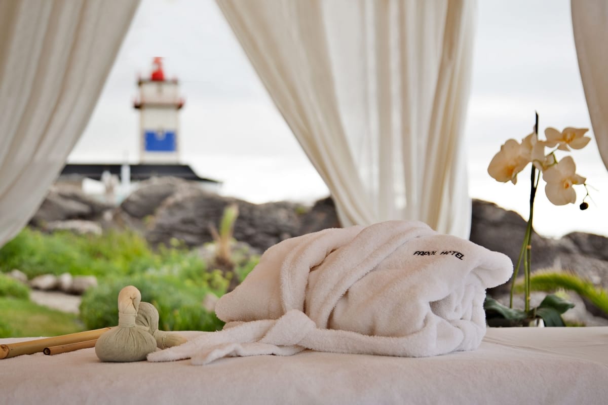 Throughout Farol Hotel’s 33 rooms and suites, decor and design create a bright and airy seaside atmosphere enveloped in historic warmth. From Standard Double Rooms with sea or garden views to Superior Doubles with private balconies, and Junior Suites offering extra space, seafront terraces, and genuine artwork, each guest accommodation is thoughtfully appointed to ensure a stylish and relaxing coastal stay. Other amenities include plush robes, organic bath products, and a pillow menu.