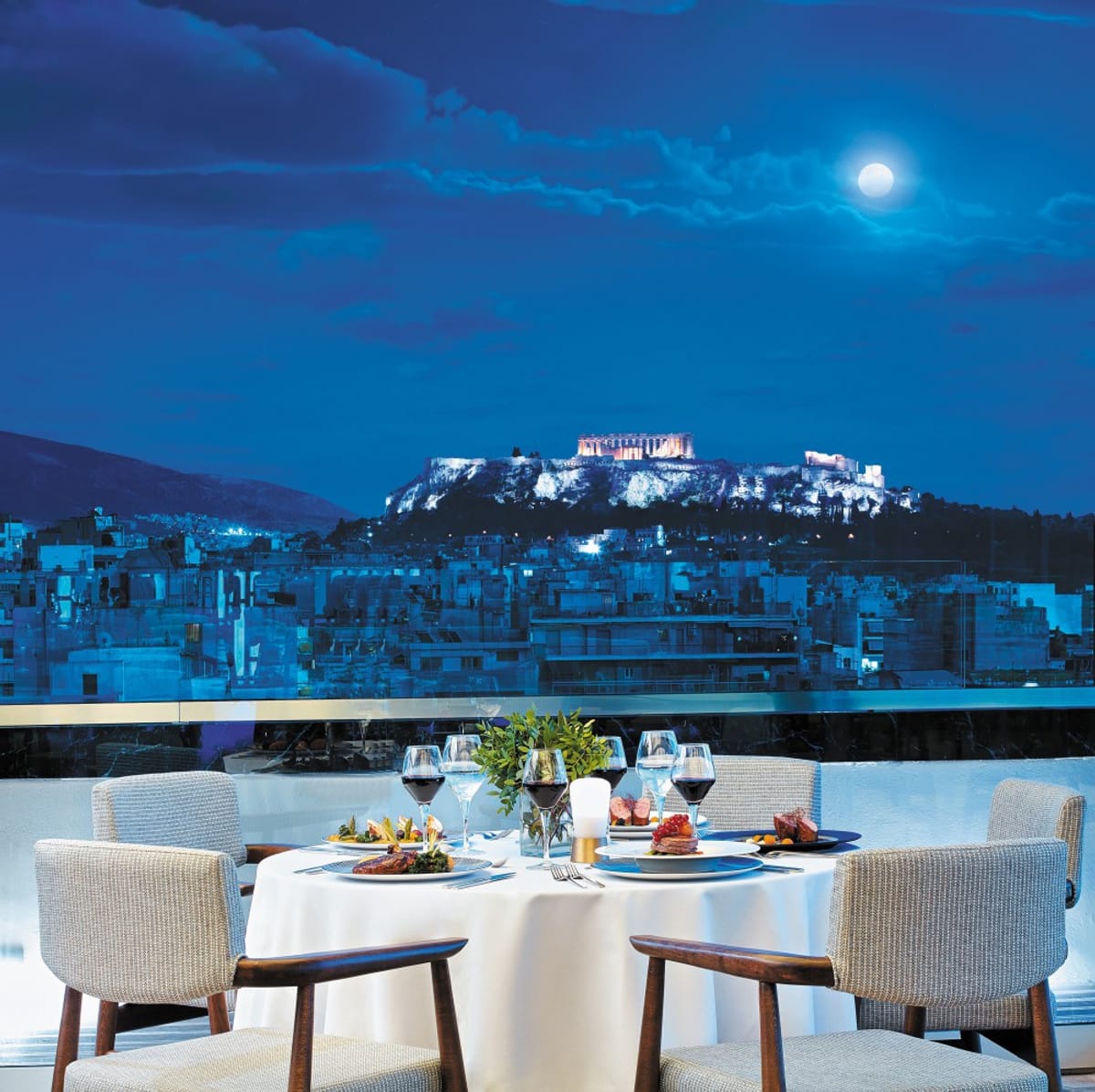 - “ABOVE” Roof Top Pool Bar Restaurant with panoramic view to the city of Athens, Acropolis, Lycabettus Hill & Saronic Gulf