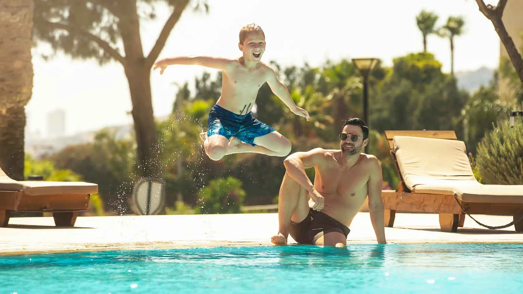 - 2 outdoor, fresh-water swimming pools, one with swim up bar and one with water slide