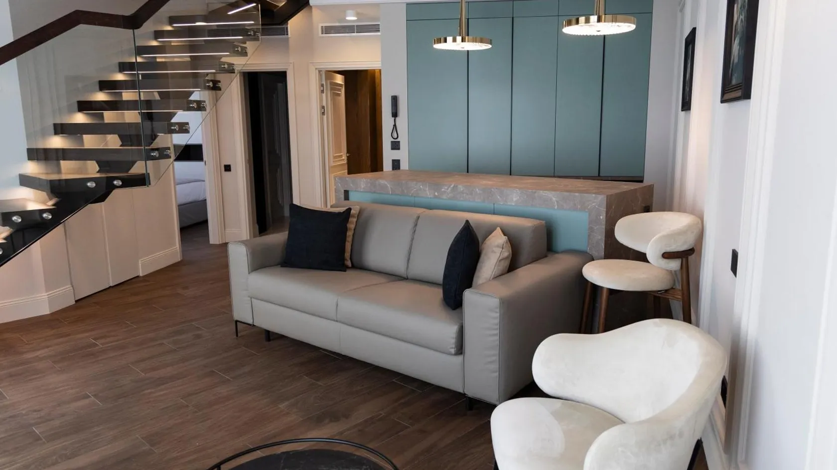 Spacious and bright interiors, high-quality finishing materials, modern furniture, create an elegant and stylish environment.